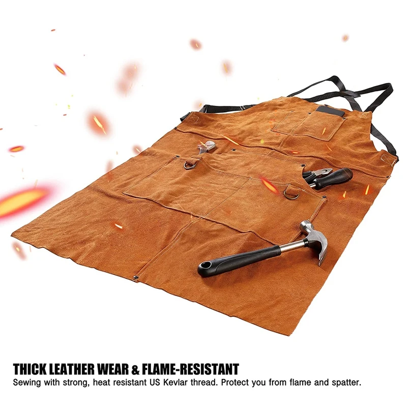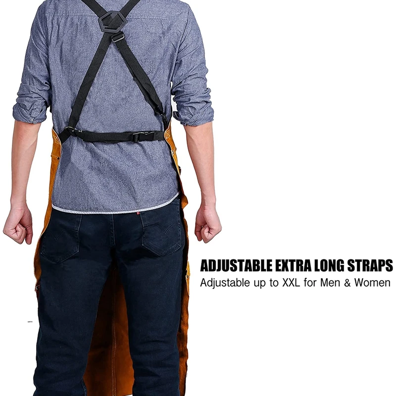Doskonała ochrona: odporny na wysoką temperaturę i trudnopalny, wytrzymały fartuch spawalniczy ze skóry bydlęcej. Wyjątkowo długi fartuch z pełnym pokryciem może chronić cię podczas pracy.