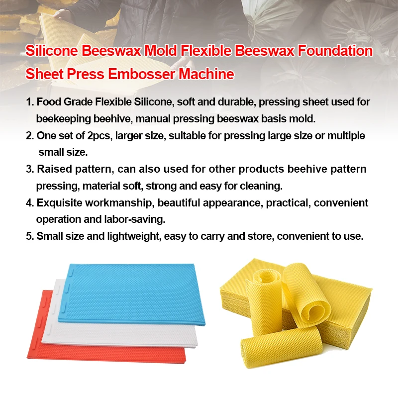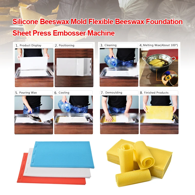 1. Food Grade elastyczny silikon, miękki i trwały, arkusz prasujący używany do pszczelarstwa ula, ręczne prasowanie formy wosku pszczelego.