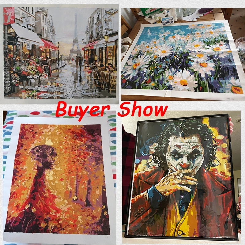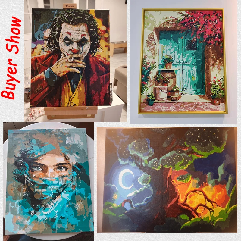 Płótno lniane; 3 pędzle; 1 zestaw farby akrylowej; Plik instrukcji; Arkusz odniesienia; Rama; Wieszak; Śruby