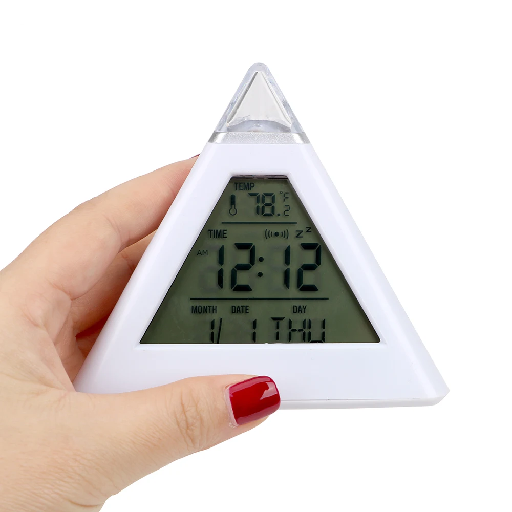 LED zmienia kolor piramidy budzik: kolorowe tylne światło, olśniewająca mobilizacja, kształt piramidy, wszystkie są nowatorskie.