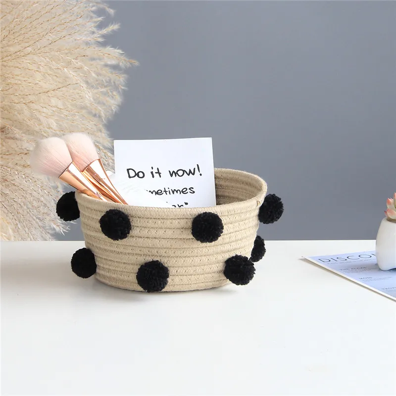 INS Nordic Cotton Rope tkane kosze do przechowywania kosz na brudne ubrania z pomponami rozmaitości pulpit Organizer do suszenia prania25