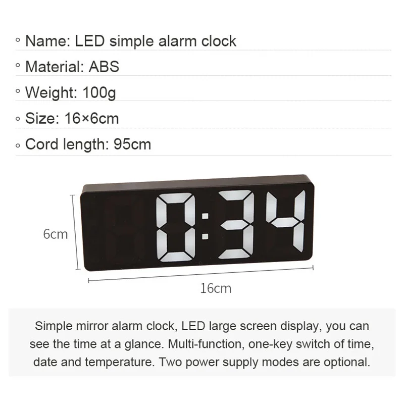 ◕Nazwa produktu:Lustrzany budzik LED zegar