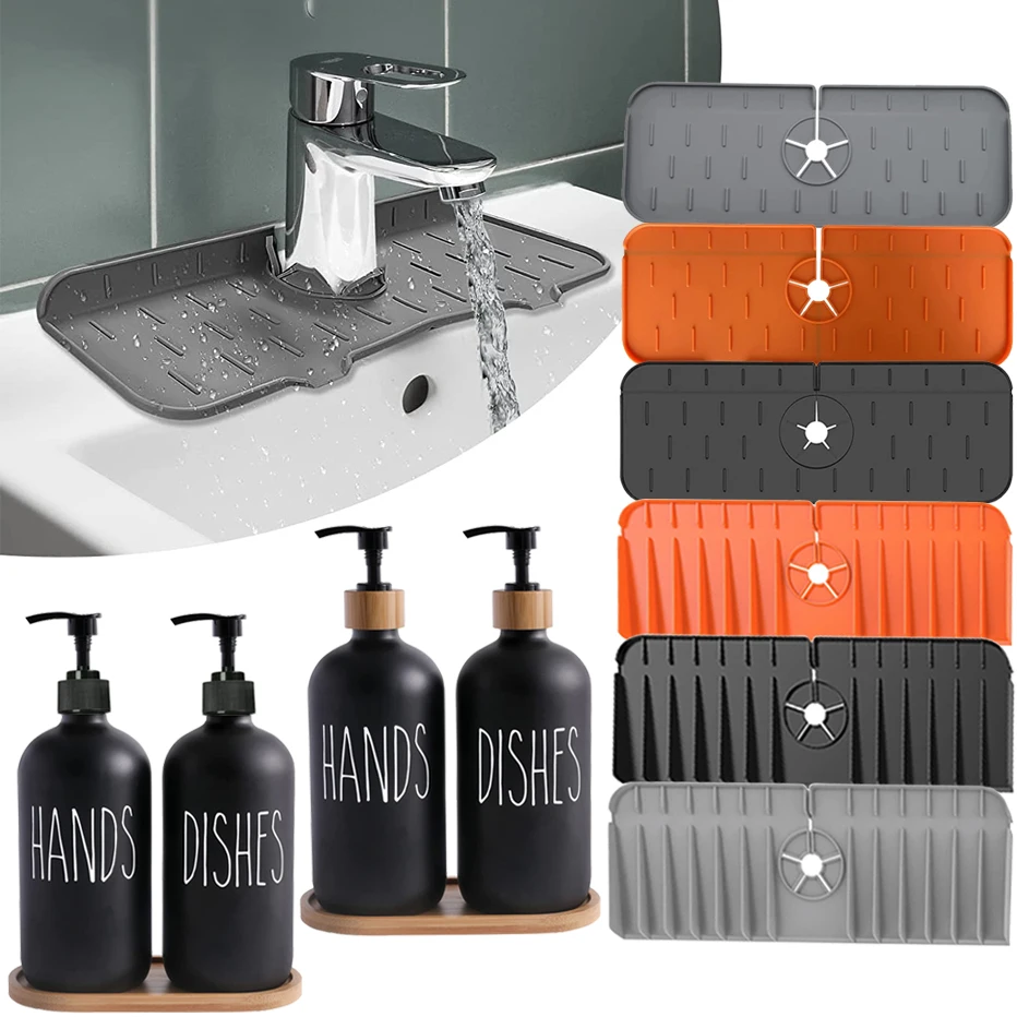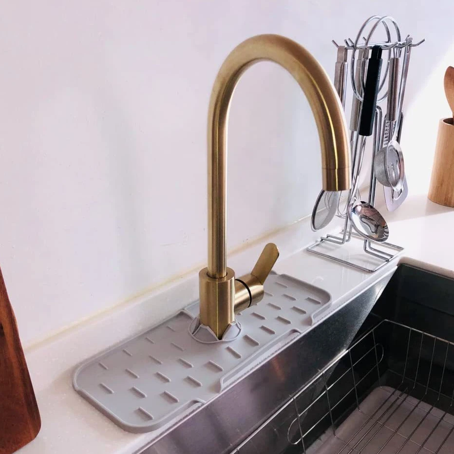 * Utrzymuj blat w suchości: po użyciu kranu przestań wycierać umywalka nablatowa! Zawsze zachować blacie, czysty i wytrzeć do sucha nasze silikonowe kran wkładki wchłaniające. Możesz również umieścić butelka detergentu na macie, aby zapobiec wyciekom.