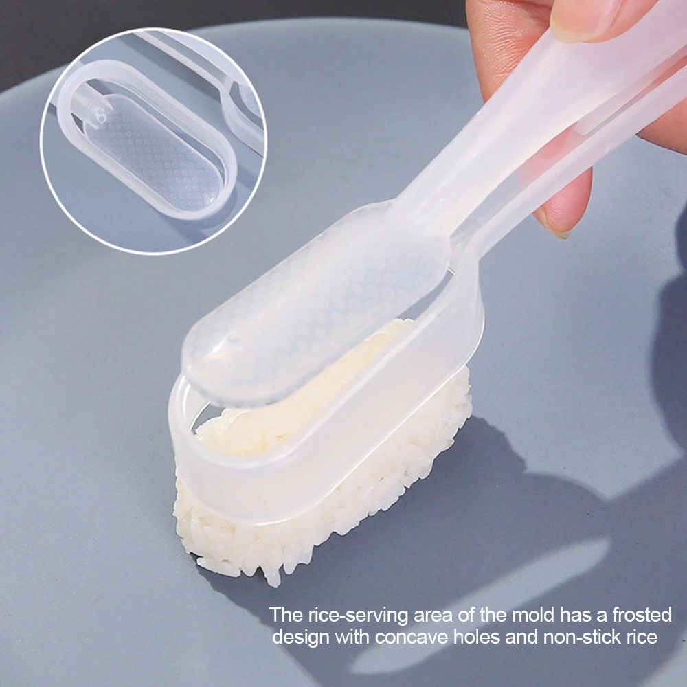 Łatwy i przyjemny długi i wygodny uchwyt, wygodny w obsłudze, mocno chwyta wewnętrzną ścianę, matowa konstrukcja, łatwy w kształtowaniu, nieprzywierający ryż łatwy do wykonania, zwiększ radość z posiłku twojego dziecka dzieci lubią używać tego zestawu, aby zrobić kulki ryżowe! ^ Jedźmy razem!