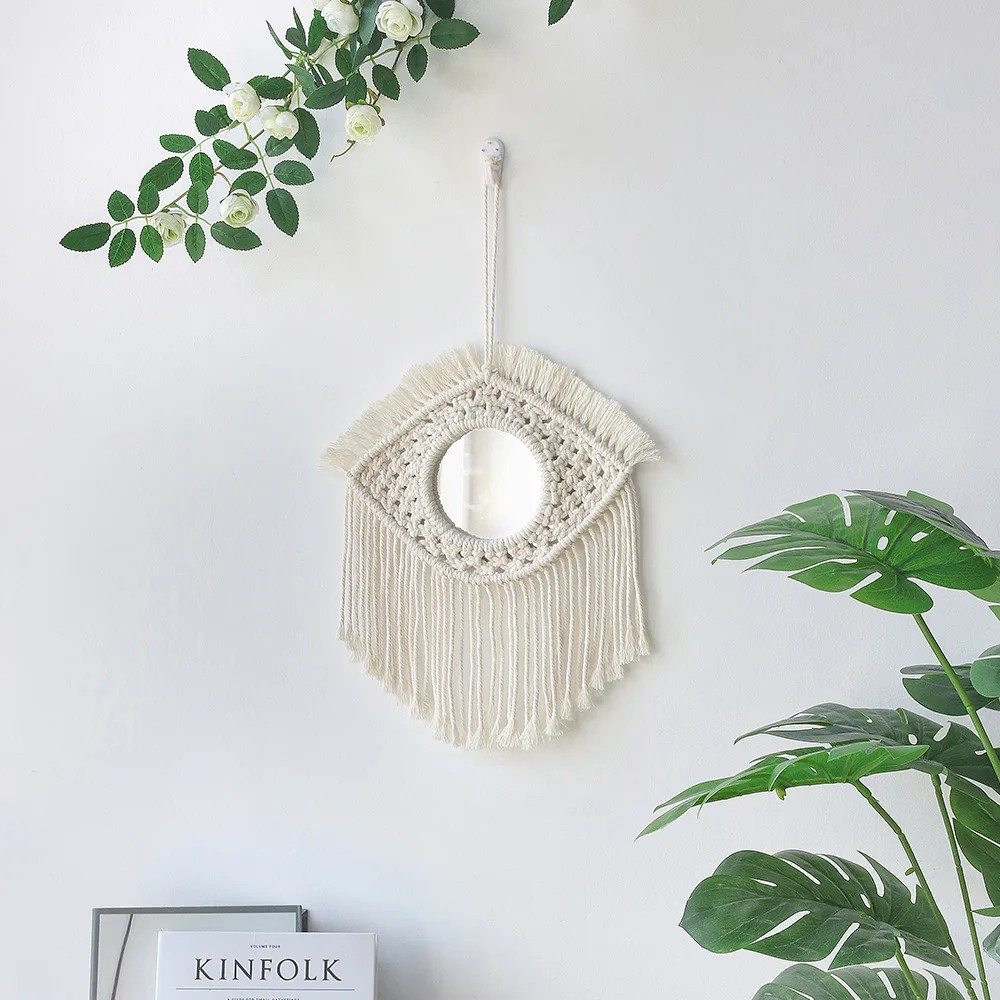Makrama ściany wiszące okrągłe lustro z frędzlami makrama wystrój w stylu Boho gobelin czechy dekoracje ścienne dla dzieci dziewczyna pokoju dziecięcego