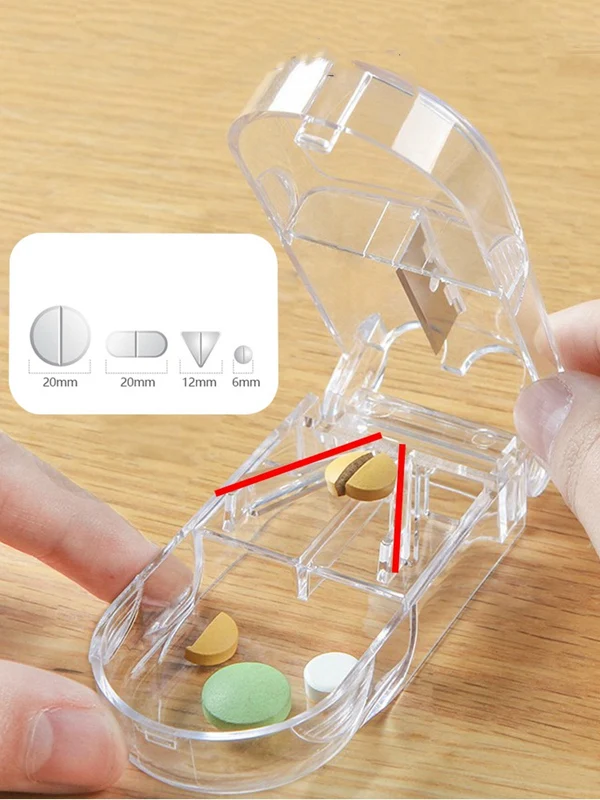 Zakres zastosowania: wytnij pigułki, można podzielić na 1/2 lub 1/4, można przechowywać leki, pigułki