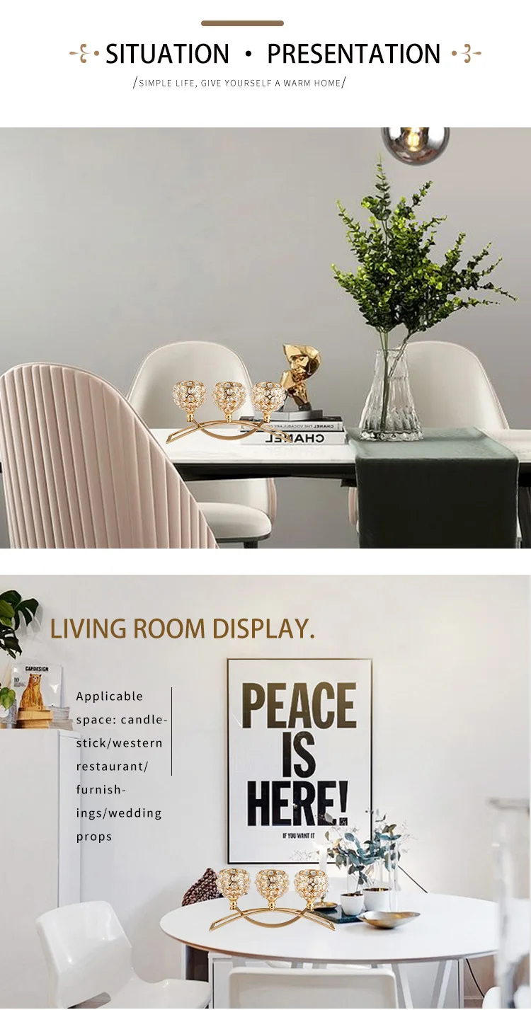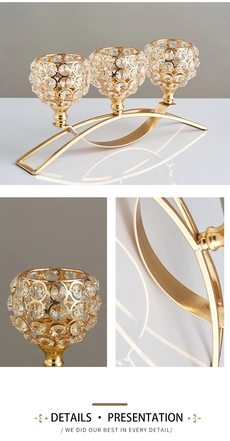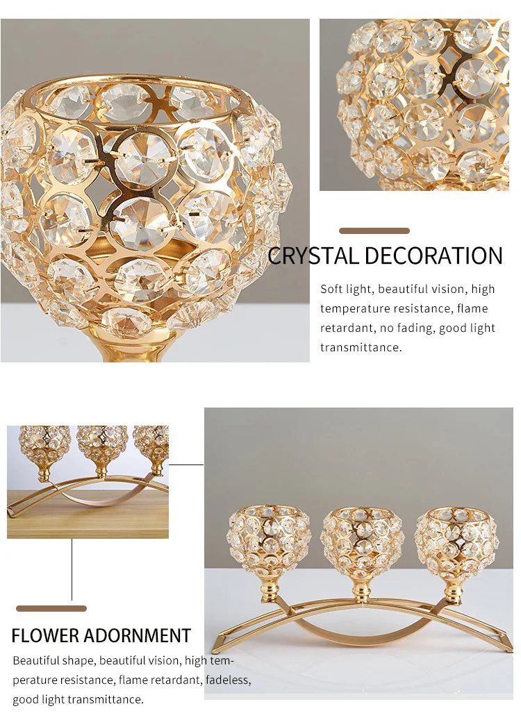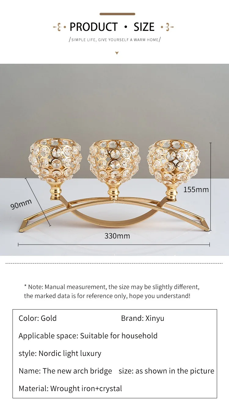 Konstrukcja tego nowoczesnego świecznika łukowego inspirowana jest żelaznym mostem, może zapewnić, że uchwyt będzie solidny i stabilny. Górne 3 indywidualne iskrzące kryształowe miski sprawiają, że jest wspaniały.