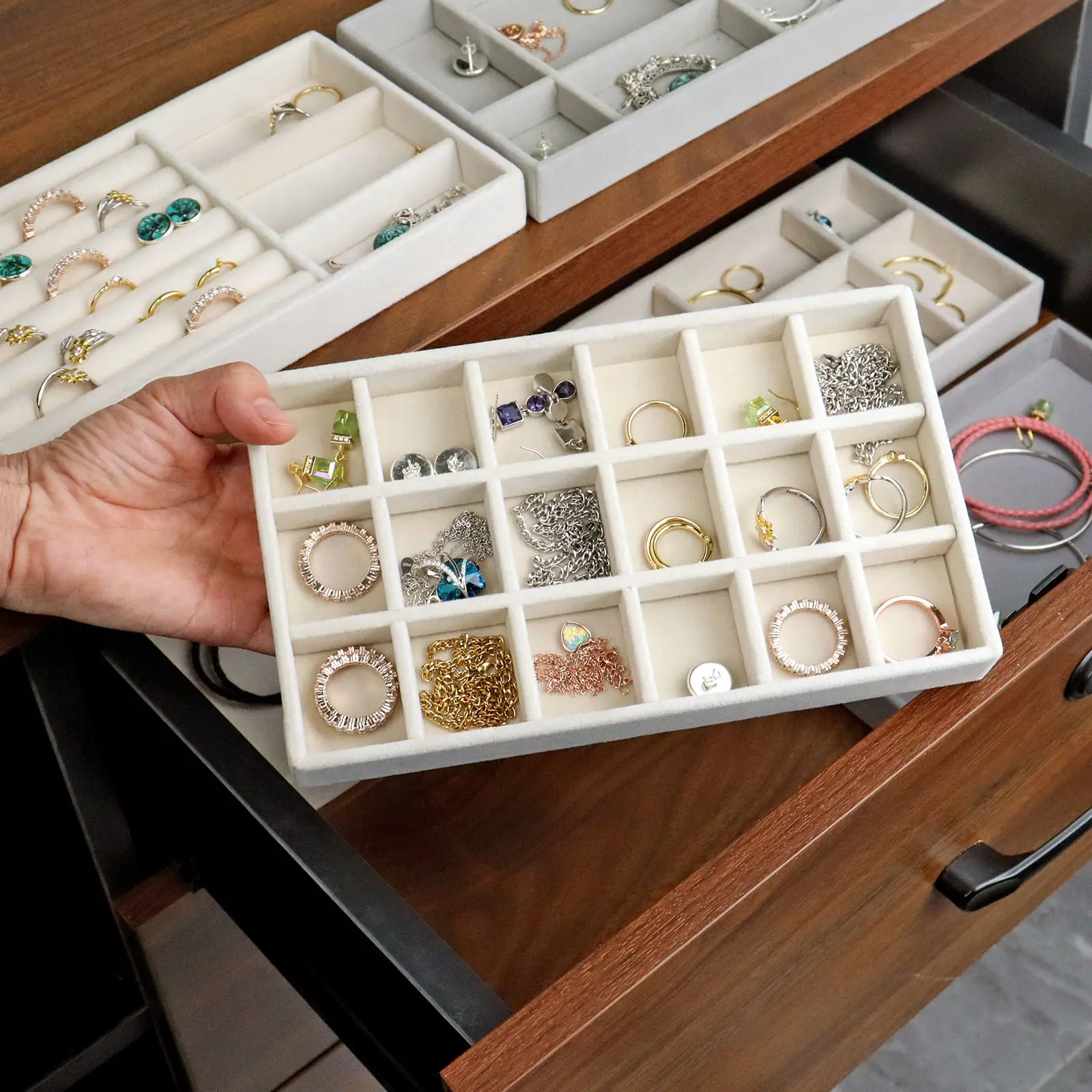 Miękkie aksamitne pudełko na biżuterię szuflada schowek taca wystawiennicza walizka z szufladami stojak na biżuterię na pierścień kolczyki bransoletka organizator na biżuterię