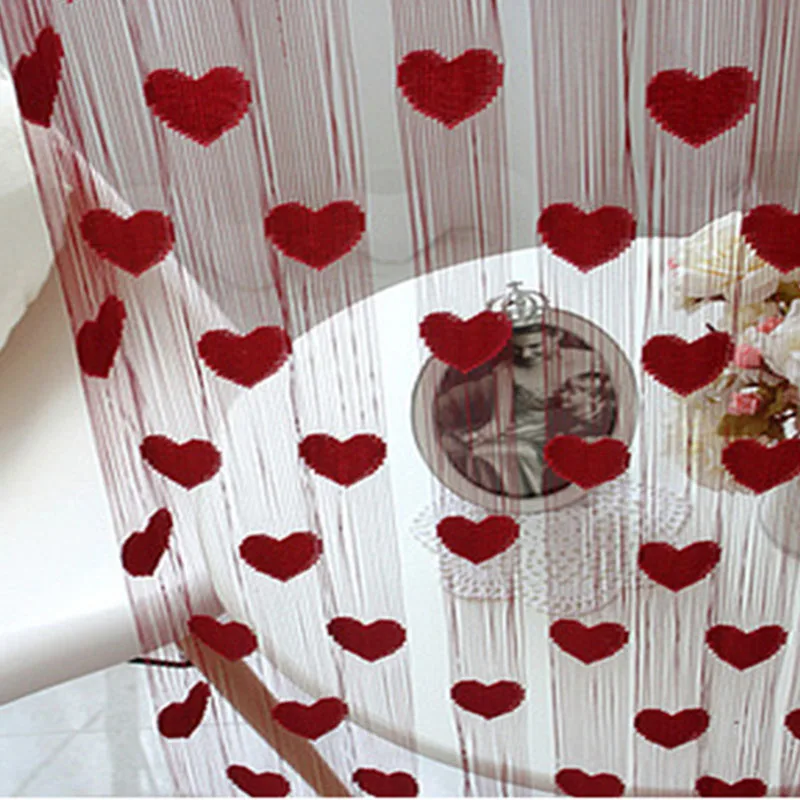 Miłość serce linia zasłona sznurkowa żaluzje drzwi dzielnik Sheer oddzielne kurtyny romantyczny dekoracje ślubne kurtyny dekoracji domu