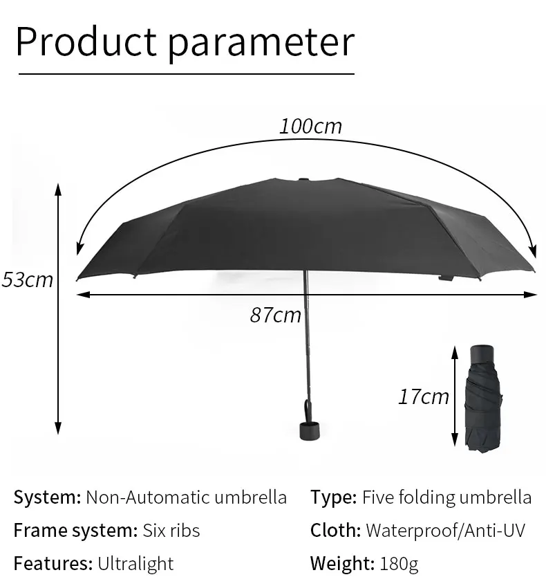 Be the first to review “Mini 180g moda składany Parasol deszcz kobiety kieszeń Parasol dziewczyny mały Parasol dzieci męska odkryty 5 krotnie przenośne parasole”