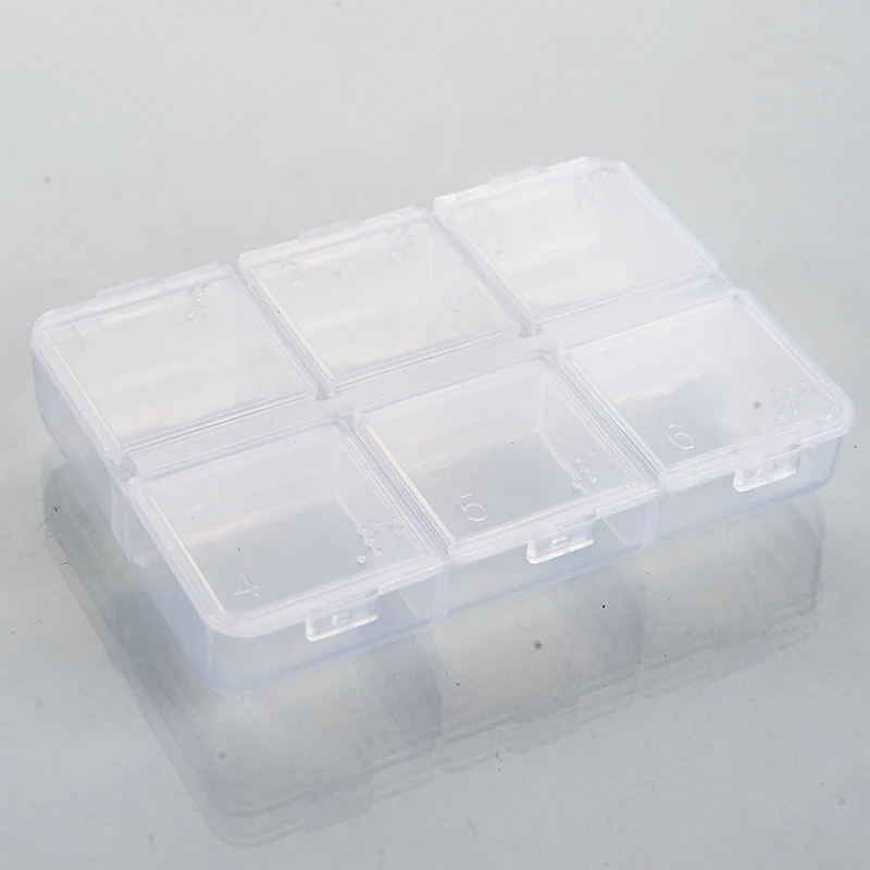 To pudełko na pigułki służy do przechowywania różnego rodzaju tabletek, zdobienia paznokci, małej biżuterii itp., co może być ważnym niezbędnik podróżny i narzędzie wielofunkcyjne w życiu. Jest z 6 małymi komórkami, wygodnymi do sortowania różnych tabletek i małych gadżetów. Każda pokrywa komórki jest oznaczona numerem i braillem, dzięki czemu niewidomi ludzie mogą wiedzieć, co jest w nim, dotykając braille’a na każdej pokrywie komórki.