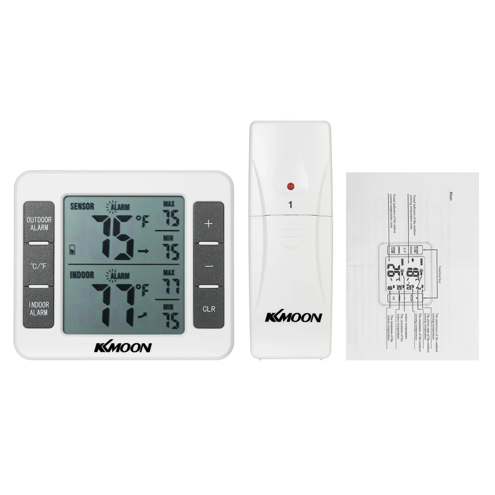 Max i min wyświetlacz wewnętrzny i 2 temperatura zewnętrzna z ręcznym czyszczeniem max/wartość min.
