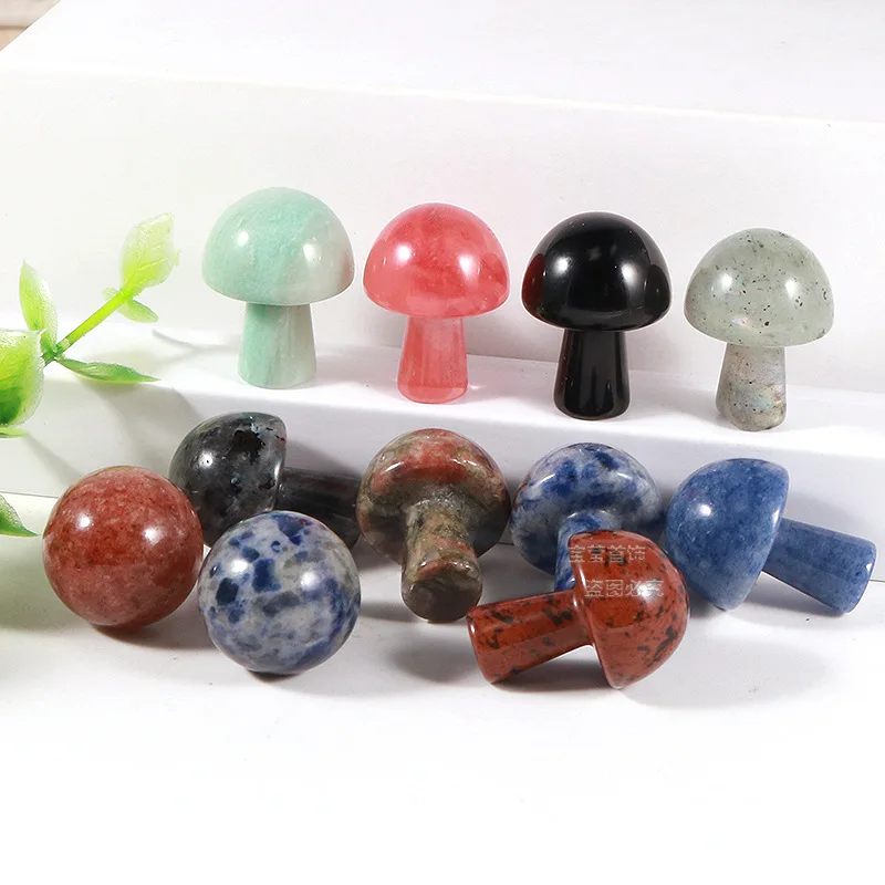 Mini naturalny kryształ statua rzeźba grzyby figurki uzdrawianie Reiki kolekcja biżuteria kwarcowy wystrój pokoju ozdoba domu