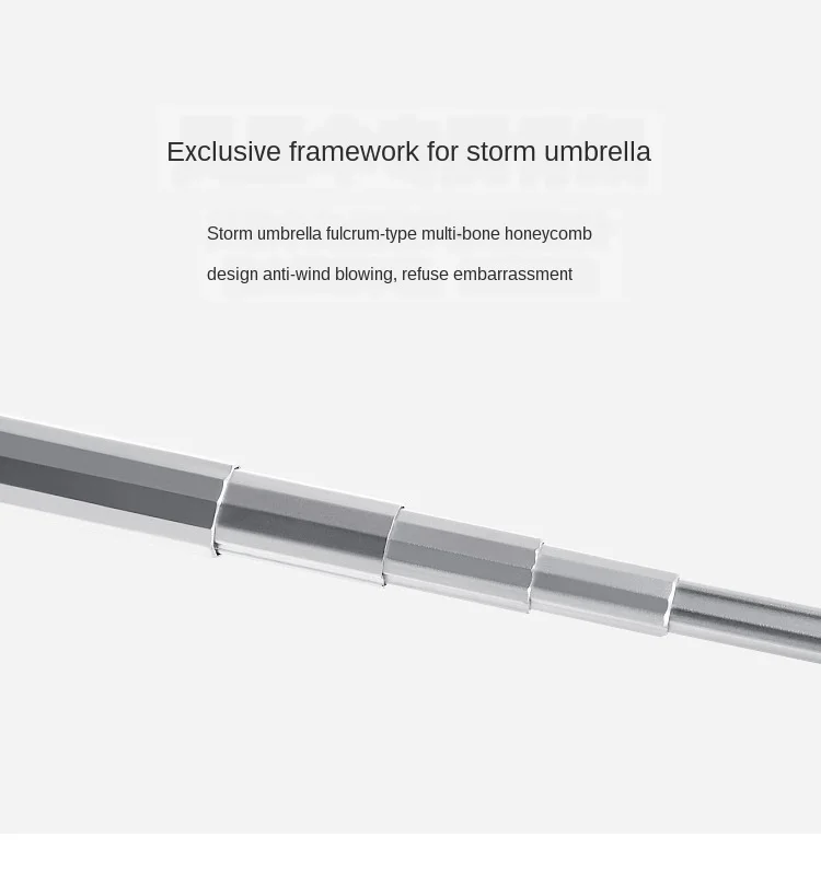 Rozmiar parasola wynosi 18*7*3cm, gdy jest skurczony, a średnica wynosi 90cm po otwarciu. Parasol ma 54cm wysokości.