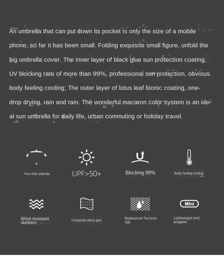 Be the first to review “Mini Parasol przeciwsłoneczny bardzo mały Mini Parasol przeciwdeszczowy Parasol winylowy kieszeń ochrona przeciwsłoneczna i ochrona przed promieniowaniem ultrafioletowym Parasol UV50 +”