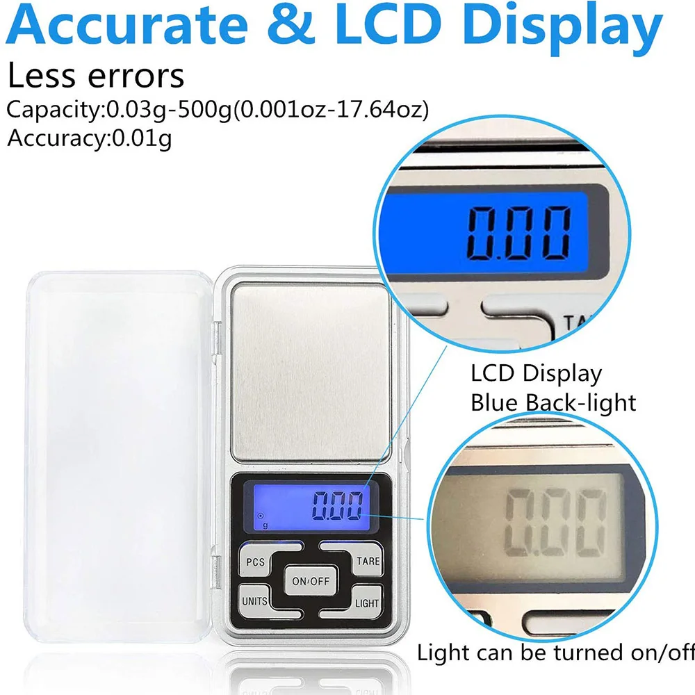 Mini wagi elektroniczne High Precision 500g x 0.1g kieszonkowa cyfrowa skala dla Gold Sterling biżuteria Balance Gram dla skali kuchennej