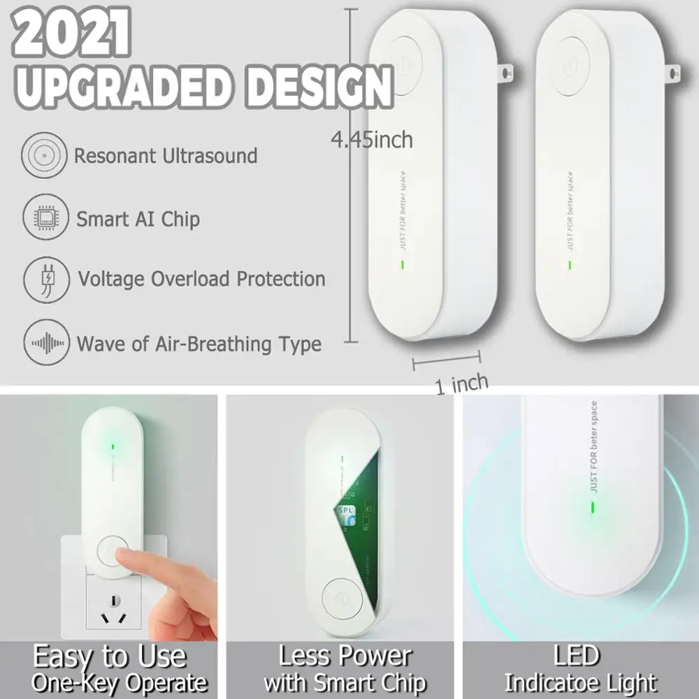 Ten odstraszacz ultradźwiękowy został zaprojektowany z konwersja częstotliwości, w tym częstotliwość, że komary, roztocza, myszy, i innych małych owadów są obrażone. To jest wielofunkcyjny. Częstotliwość zmienia się co sekundę. Ponadto lampka kontrolna jest cyklem oddychania co 40 sekund (poprzez fale świetlne w celu zwiększenia efektu jazdy)