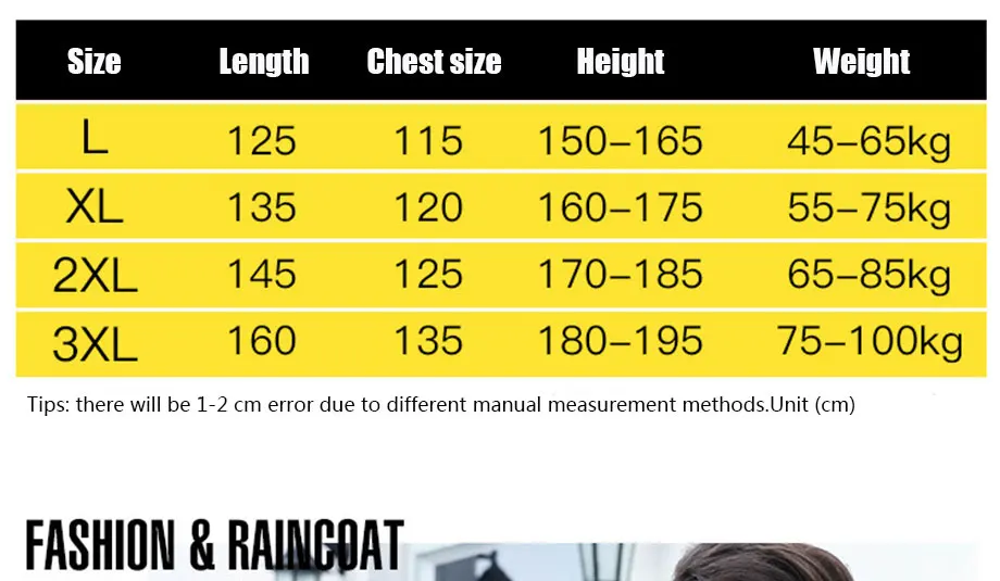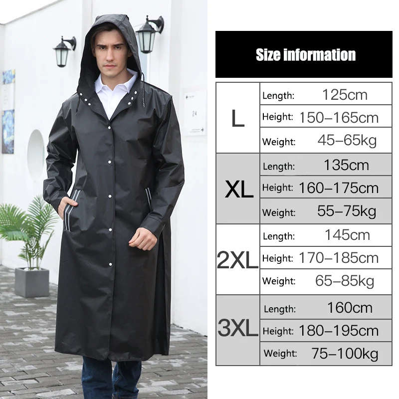 3. Zwięzły, praktyczny i modny: płaszcz przeciwdeszczowy wielokrotnego użytku może być używany przez cały rok, co jest bardziej praktyczne. Długość belows kolana dla pełnej ochrony przed deszczem. Prosty jednolity kolor, sprawia, że jesteś bardziej stylowy.