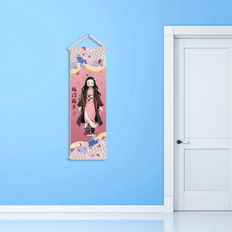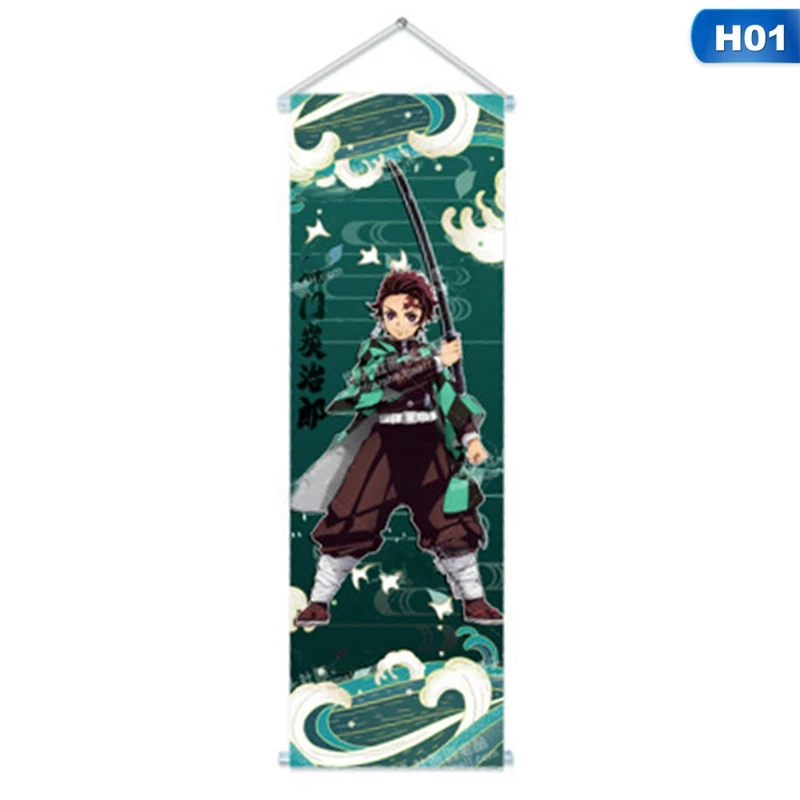 Moda drukuje przewiń Anime Demon Slayer Kimetsu plakat ściana hipisowska obraz Nordic płótno wiszące malarstwo biuro Home Decor