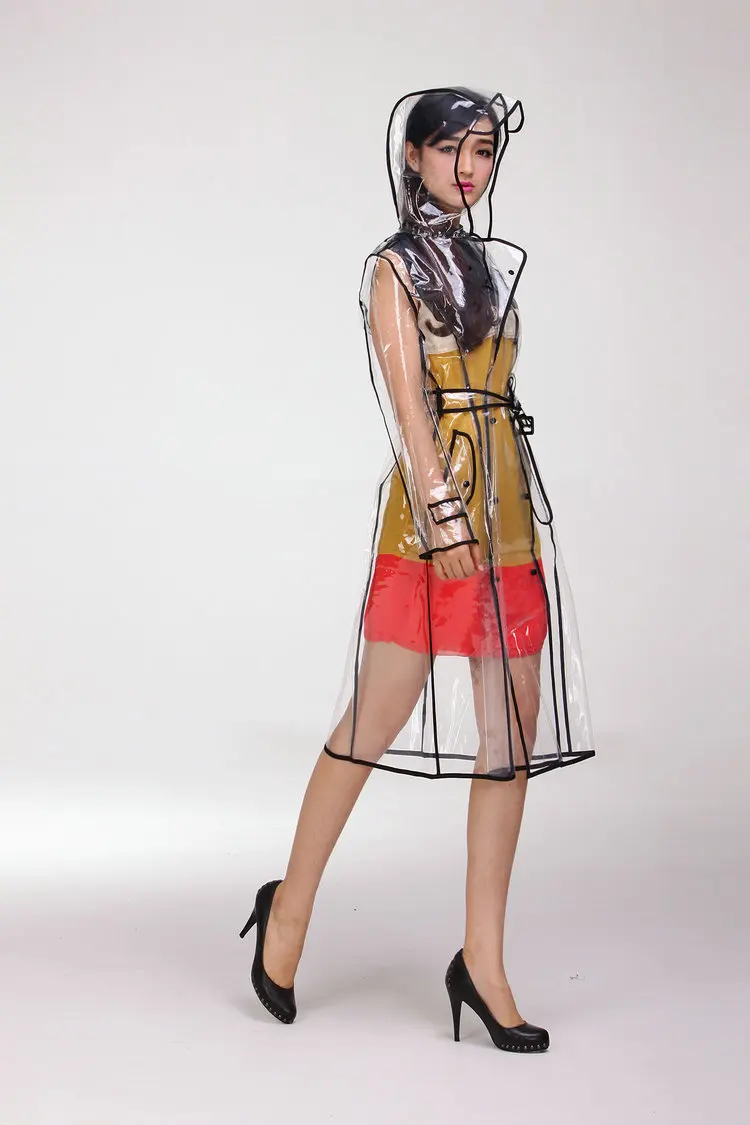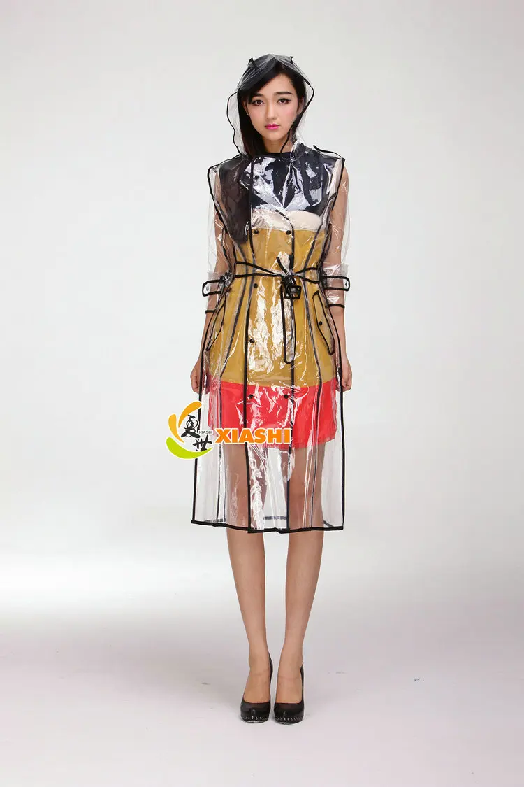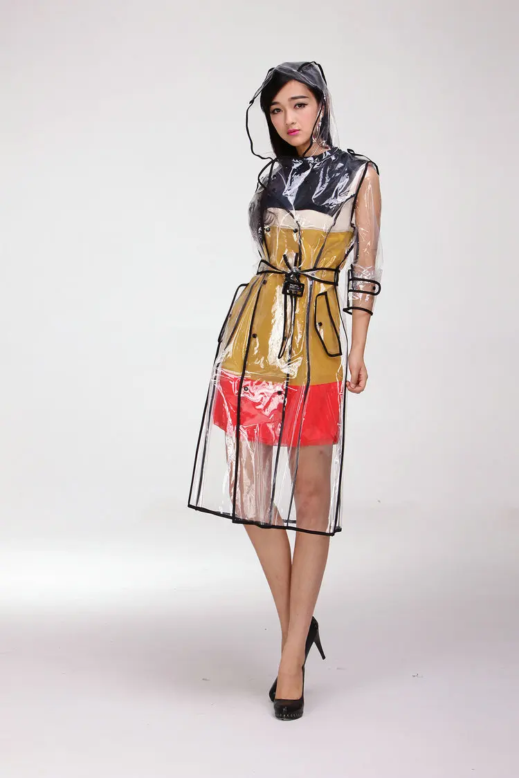 Moda EVA przezroczysty z paskiem płaszcz przeciwdeszczowy 0utdoor damska kurtka przeciwdeszczowa wodoodporna dla dorosłych kobiet fajne jasne Poncho wysokiej jakości