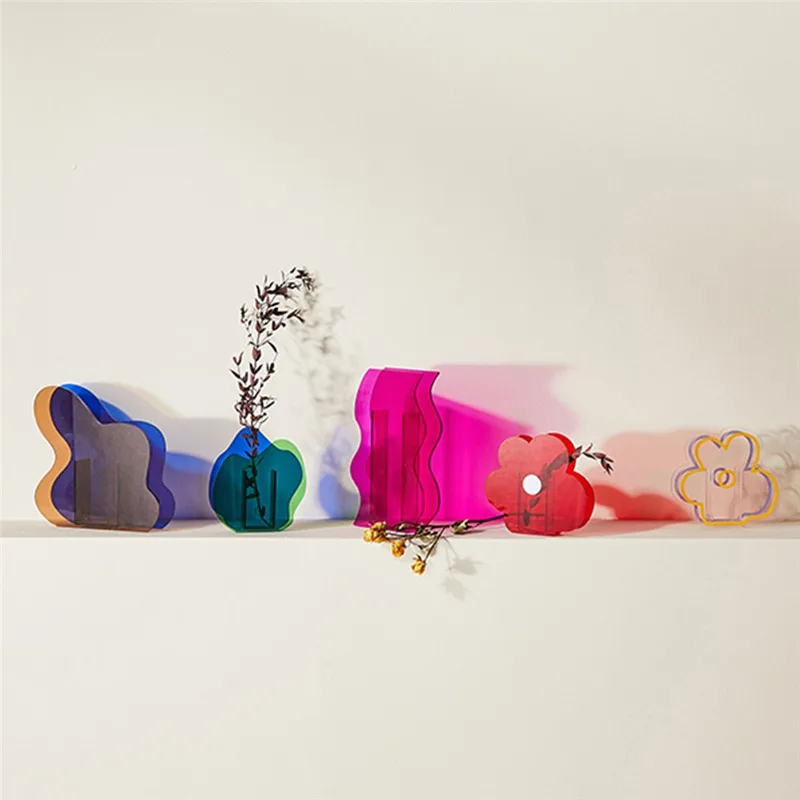 Moda Nordic Rainbow kolorowe akrylowe wazon sztuki geometryczne światło słoneczne Sunrise Daybreak wazony do dekoracji wnętrz dekoracja na biurko