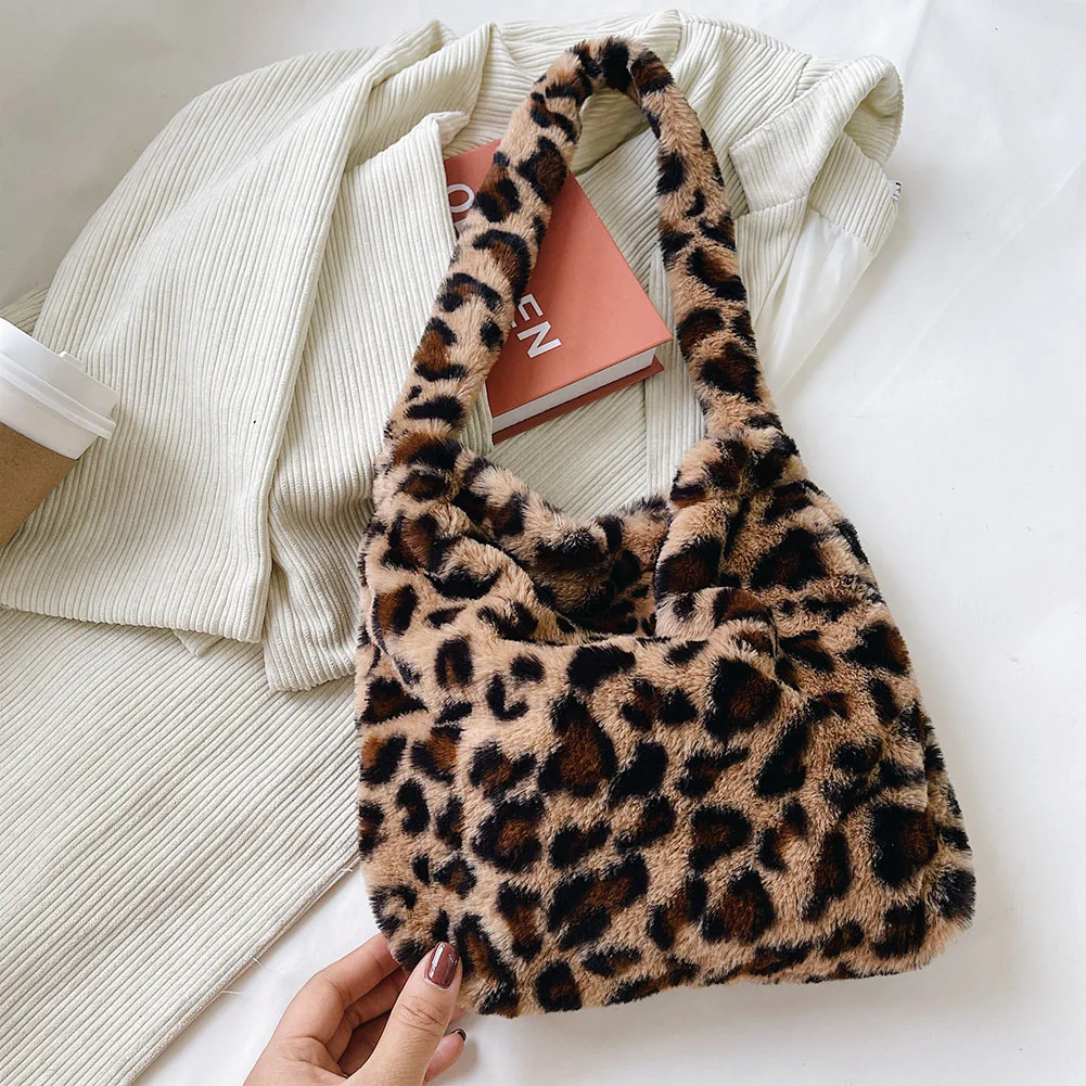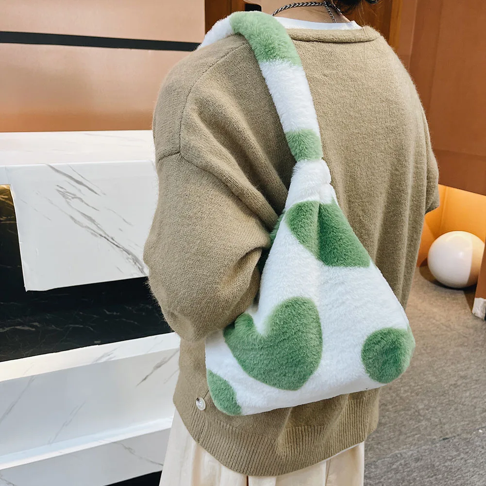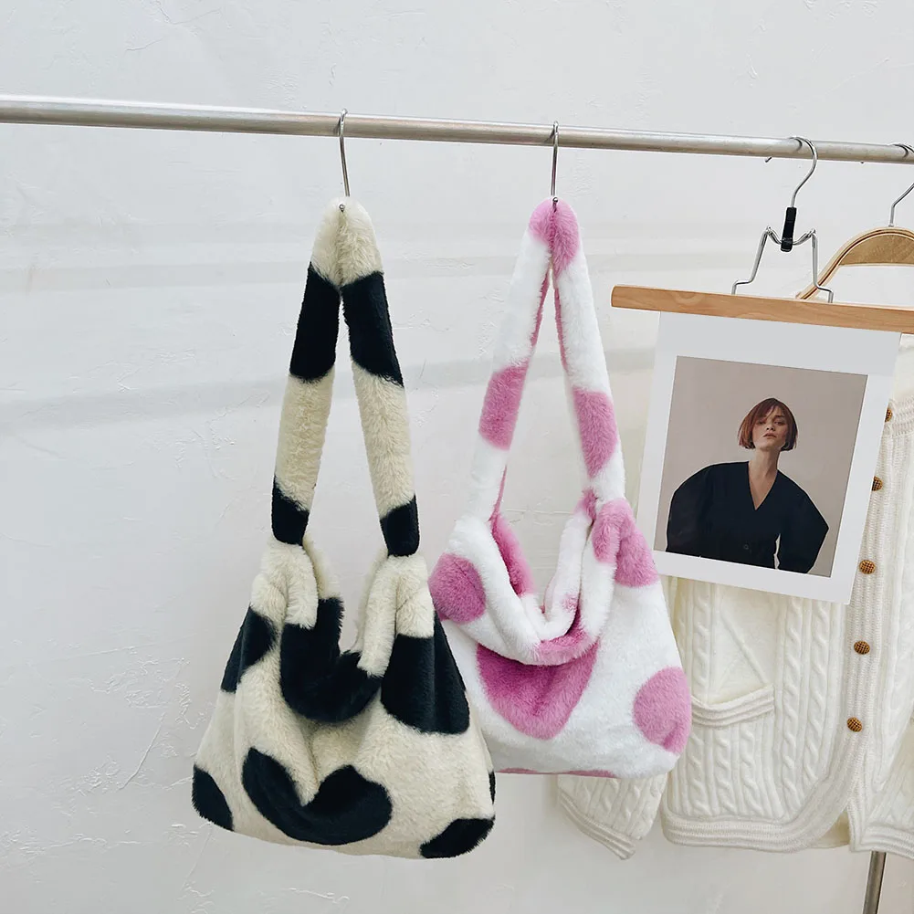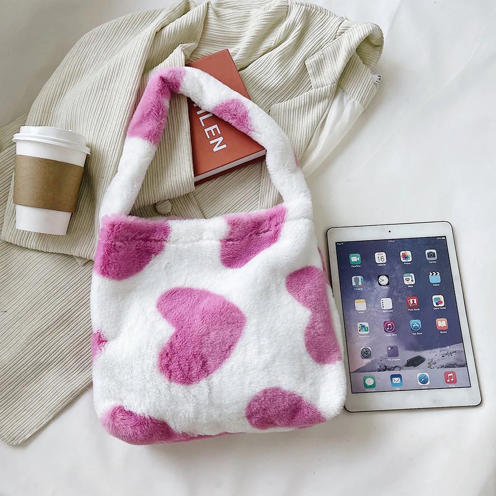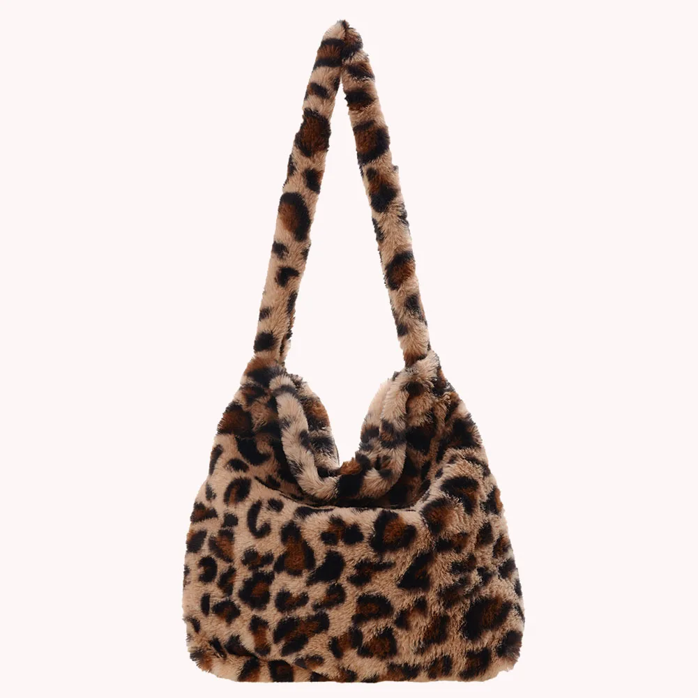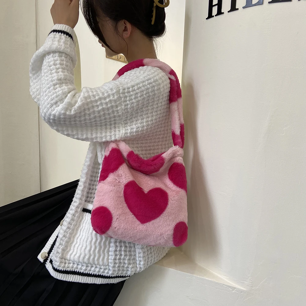 Moda damska pluszowy lampart Love Heart wzór pod pachami torba damska jesień zima duża pojemność Tote torebki