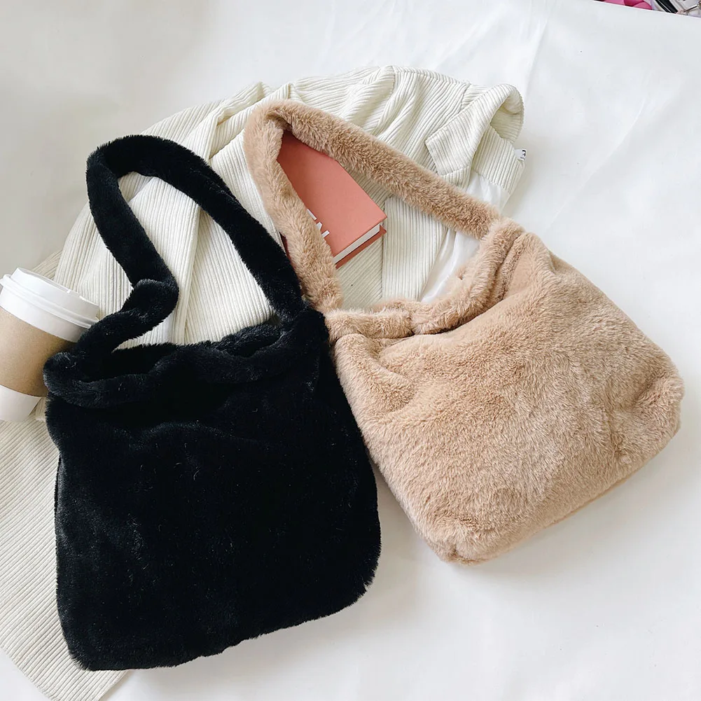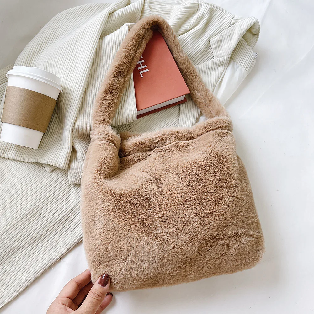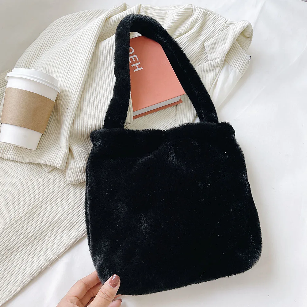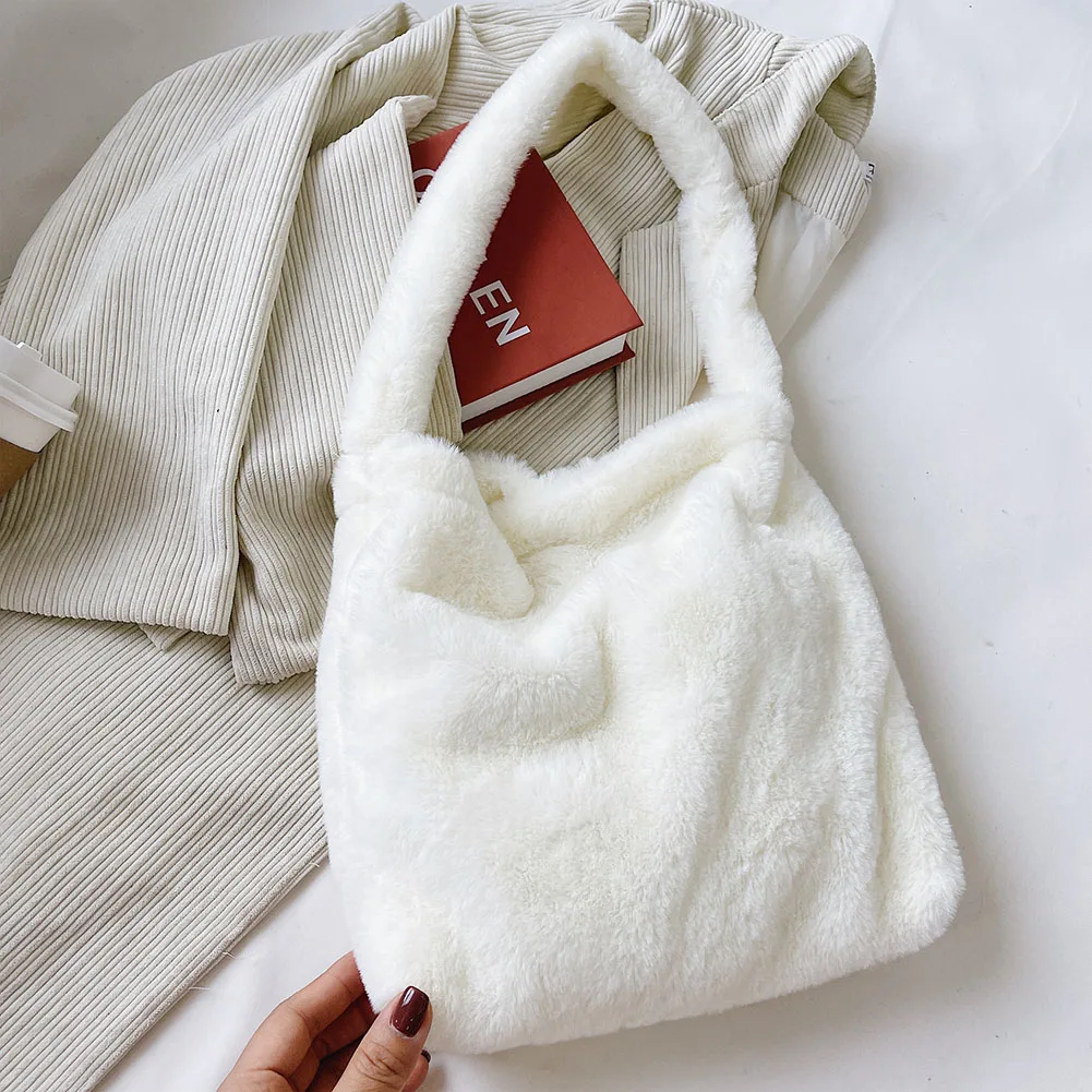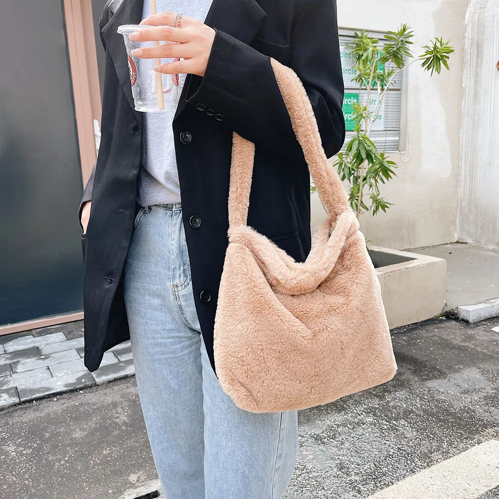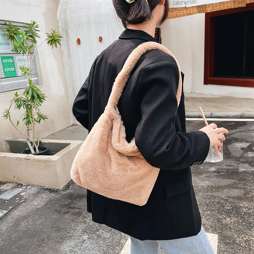 Moda pluszowa damska torba 2021 jesienno-zimowa kobiece torebki miękkie puszyste damska torba na ramię sprzęgła prosty nadruk torba damska