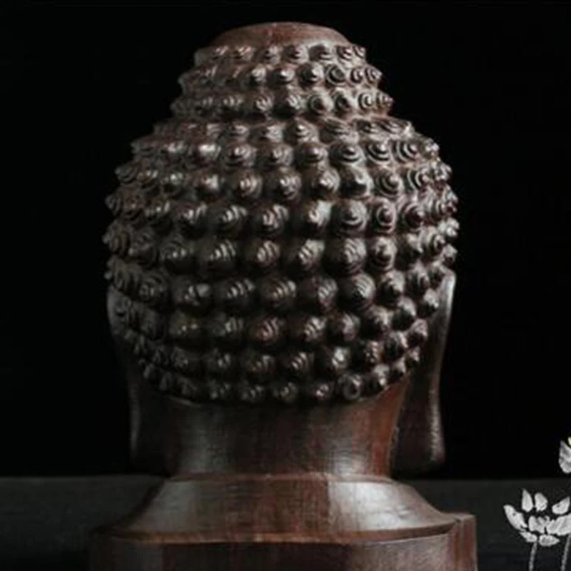 Hot Sale Fashion Buddha Statue Wood Wooden Figurine Mahogany India Buddha Head Statue Crafts Decorative Ornament
