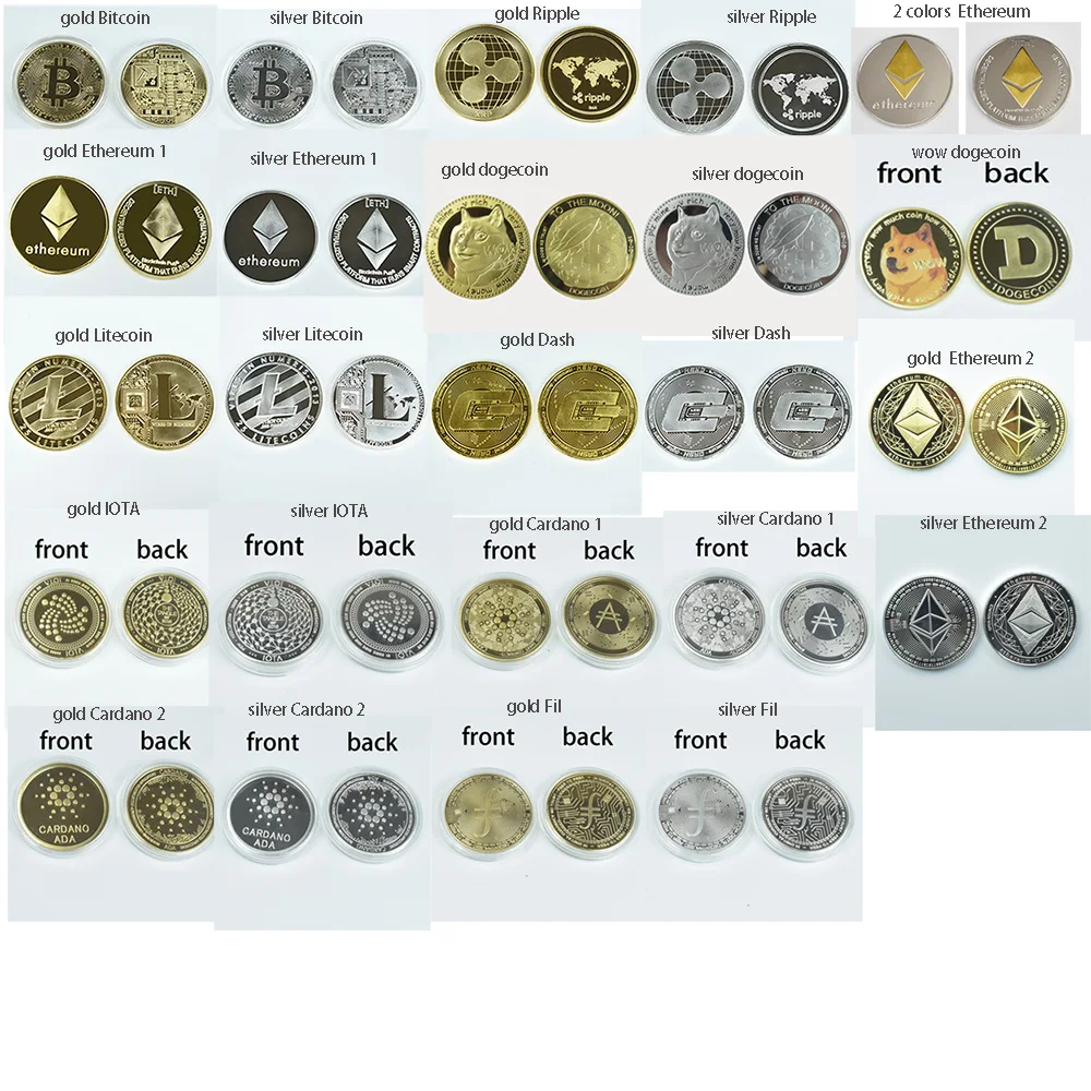 Moda prezent Bitcoin Bit moneta Litecoin marszczyć Ethereum Doge Cardano IOTA FIL kryptowaluta metalowa moneta z stojak