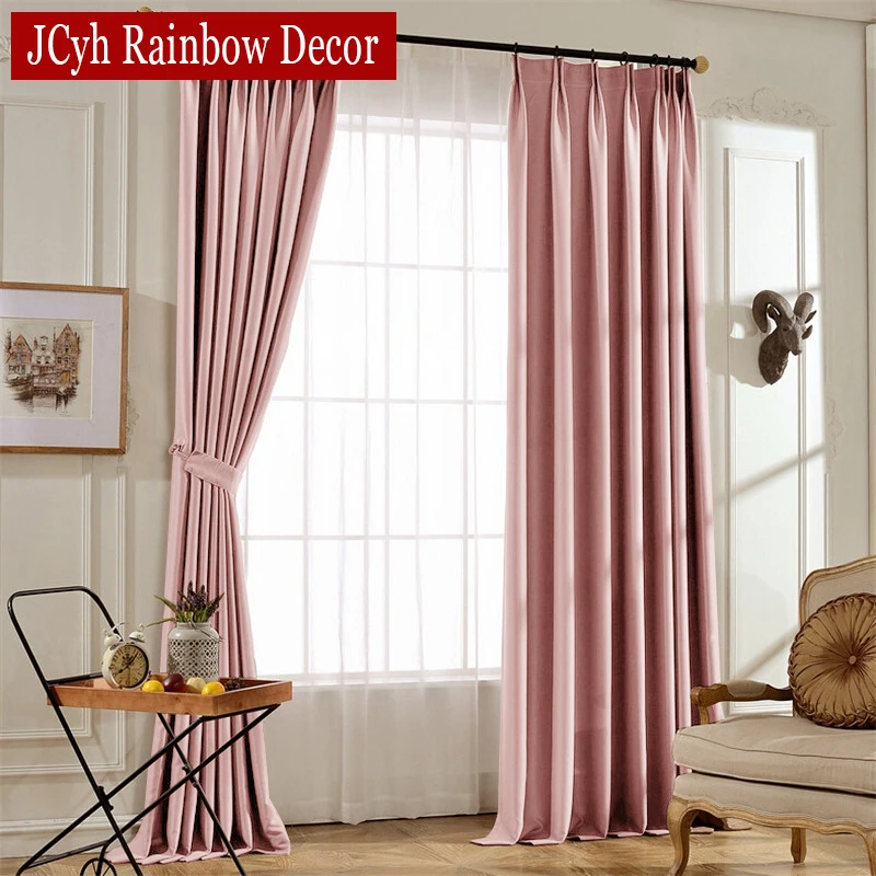 Modern Pink Blackout Curtains For Living Room Bedroom Thermal Insulated Thick Window Curtain Treatment Solid Color Drapes 90%
