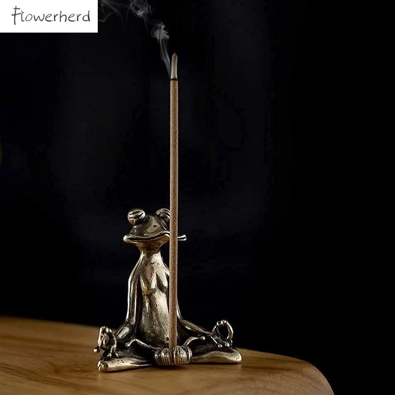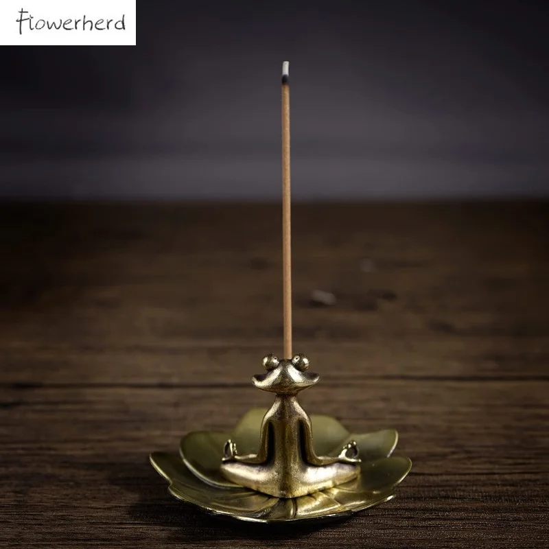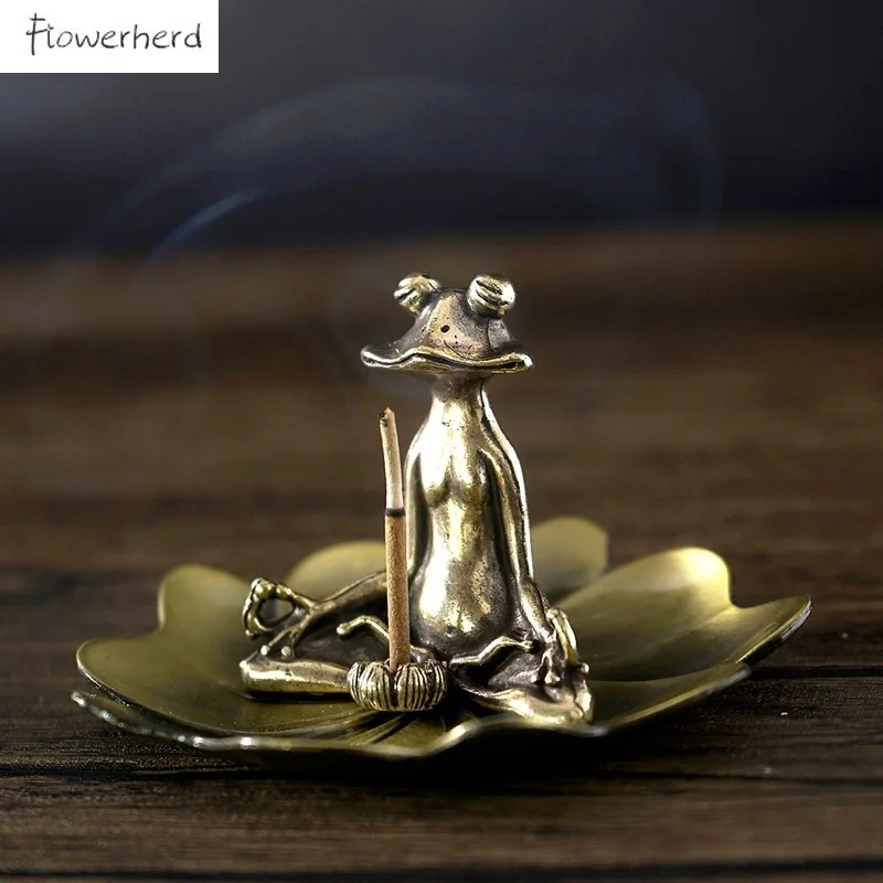 Mosiądz medytacja żaba statua figurka mosiądz kadzidło palnik żaba stojak na kadzidła z podstawka na popiół taca