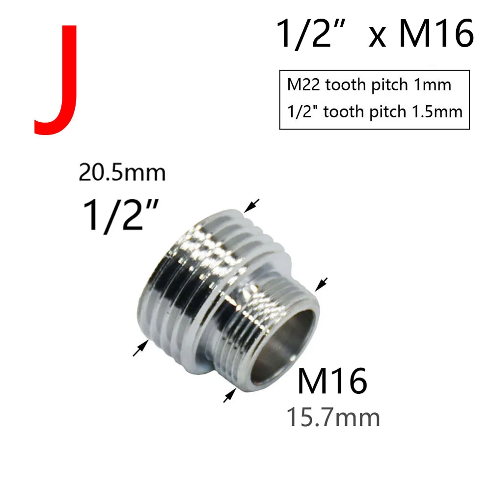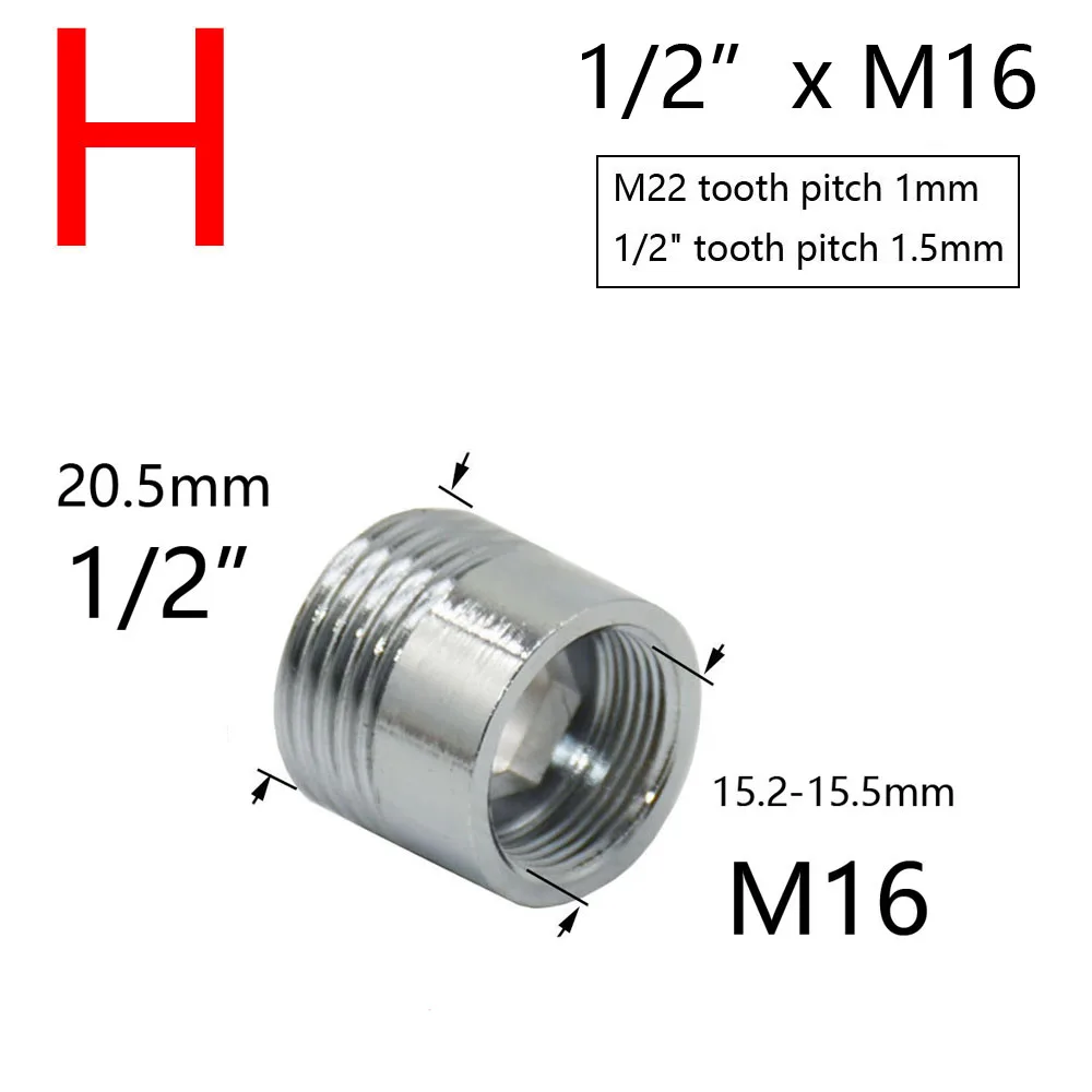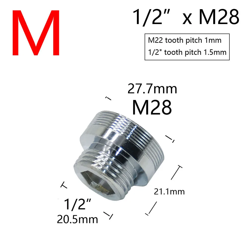 Mosiądz srebrny kran wody łącznik 1/2 do M16 M18 M20 M22 M24 M28 złącze gwintowe armatura dla Bubbler kuchnia i łazienka