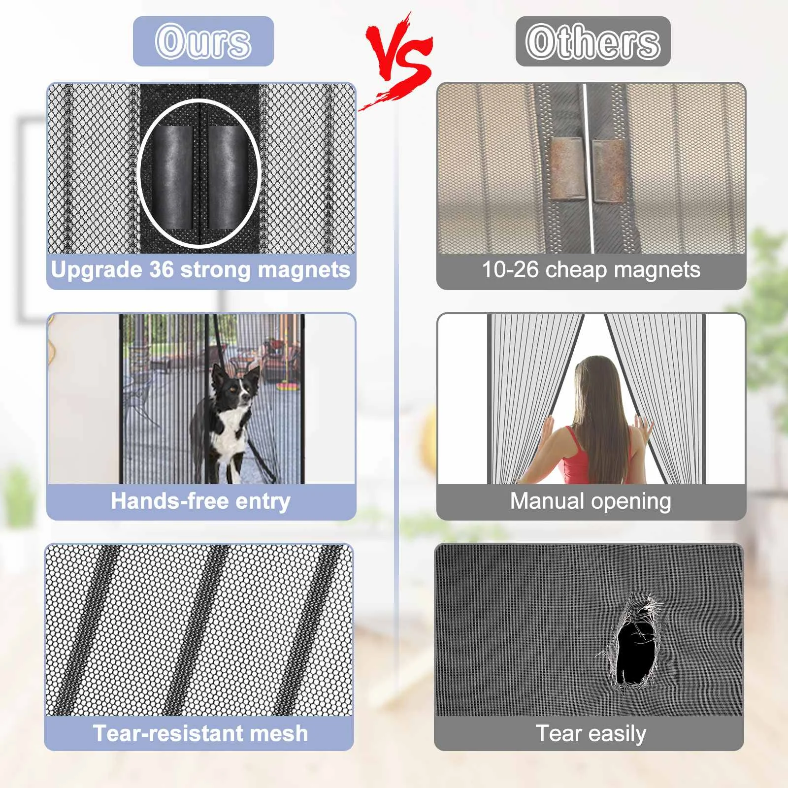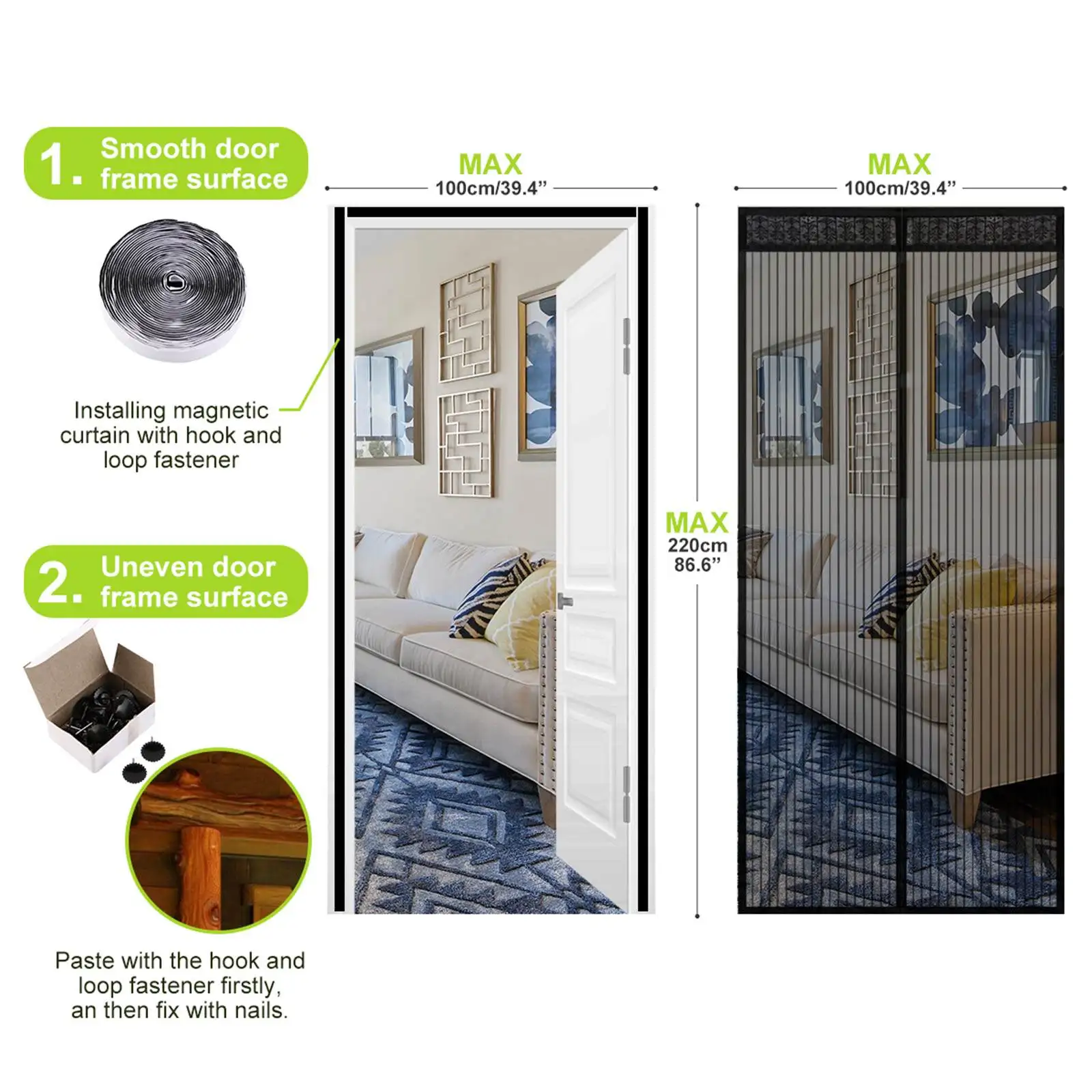 SAFETYON magnetyczny moskitiera do drzwi, ekran przeciw muchom z 36 silne magnesy i dolna waga bar, anti-łzawienie wzmocnione góry, utrzymać świeże powietrze w & Bugs Out,Pet i Kid przyjazny 【Przyjazny dla dzieci】 ten magnetyczny moskitiera do drzwi blokuje latające stworzenia, chroni przed chorobami zakaźnymi i ukąszeniami komarów i owadów. Wpuść świeże powietrze, nie martwiąc się o dziobanie komarów. Oszczędzaj pieniądze i ciesz się zdrowszym środowiskiem, zmniejszając stosowanie klimatyzacji i odstraszaczy chemicznych komarów ani zabójców much, które mogą być niebezpieczne dla zwierząt domowych lub dzieci. Można go łatwo przymocować do drzwi balkonowe, sypialni, kuchni, pokoju dziecięcego lub drzwi przesuwnych. |