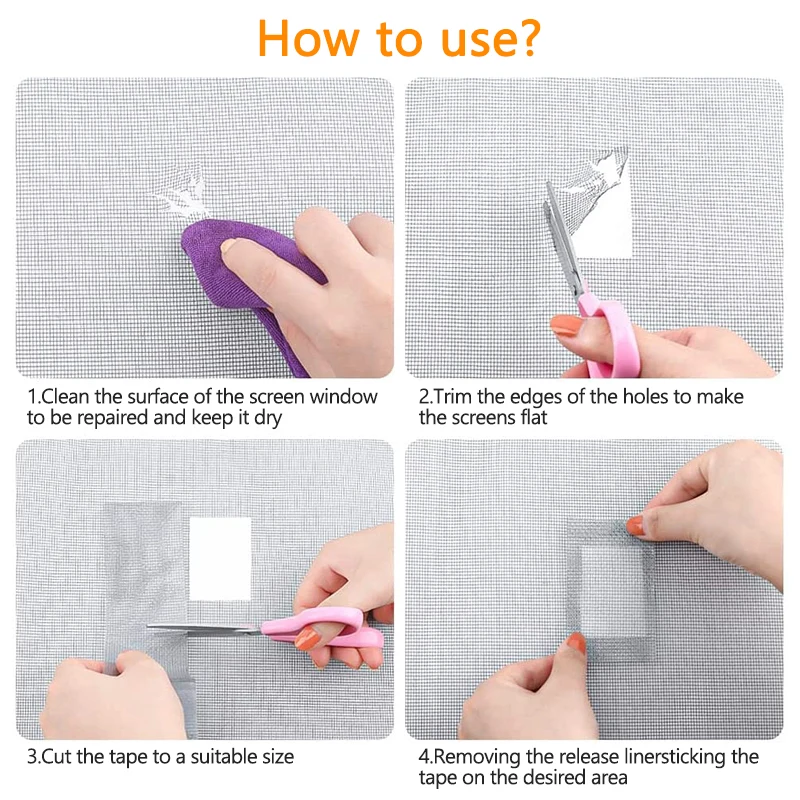 Nasza moskitiera na okno zestaw naprawczy taśma jest łatwa w aplikacji i szybka naprawa; Wystarczy wyciąć i umieścić niezależnie od rozmiaru, który chcesz naprawić łzy i dziury na ekranie.