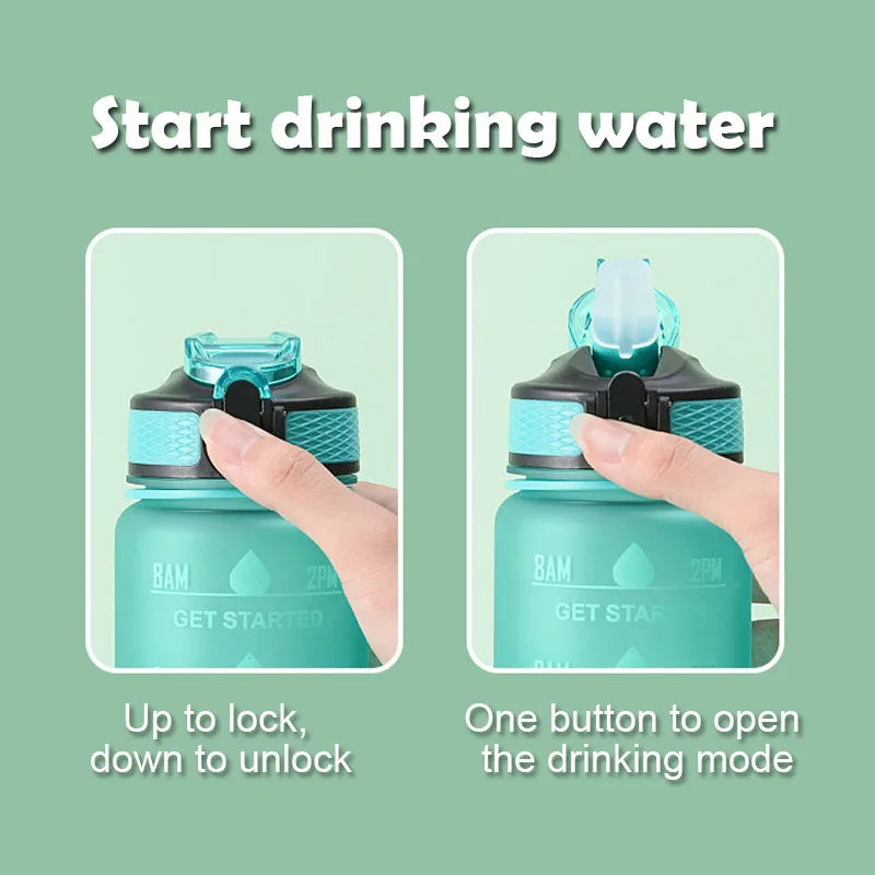 1.1000ML sportowa butelka na wodę ze znacznikami czasu i cytaty motywacyjne.