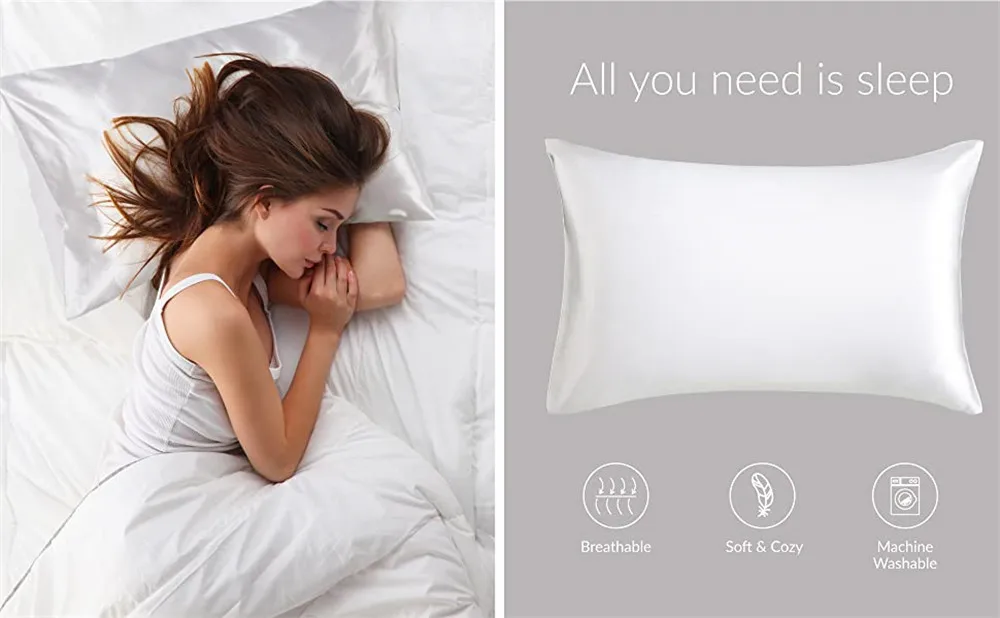 Twoja poduszka będzie bezpiecznie trzymana wewnątrz satynowa poszewka na poduszkę i nie ma żadnych zamków błyskawicznych, które mogłyby cię szturchać podczas snu.