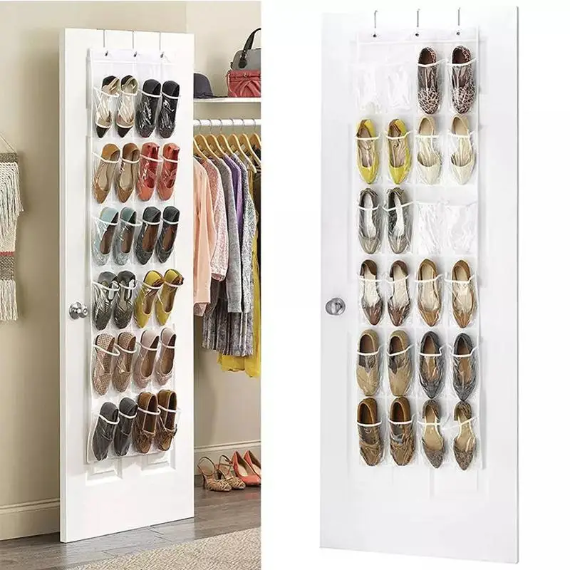 –Wiszący ORGANIZER na buty-24 przezroczyste kieszenie organizują do 12 par butów, użyj organizera do butów w szafie, aby zaoszczędzić miejsce na podłodze, aby uzyskać najlepsze rozwiązanie do przechowywania butów
