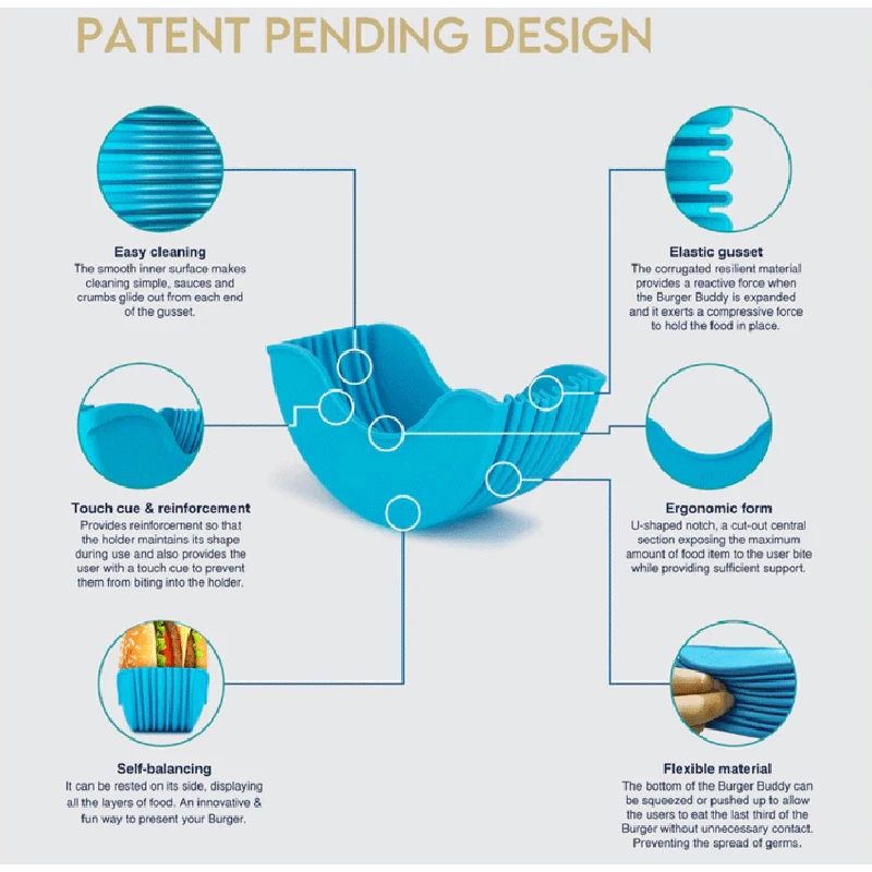- Używamy BPA darmowe plastikowe, który jest odporny na wysokie temperatury i może być myte w pralce. Uchwyt Burger jest przyjaznym produktem, który zmniejsza bałagan podczas posiłków, dzięki czemu możesz mieć więcej czasu na rzeczy, które kochasz.
