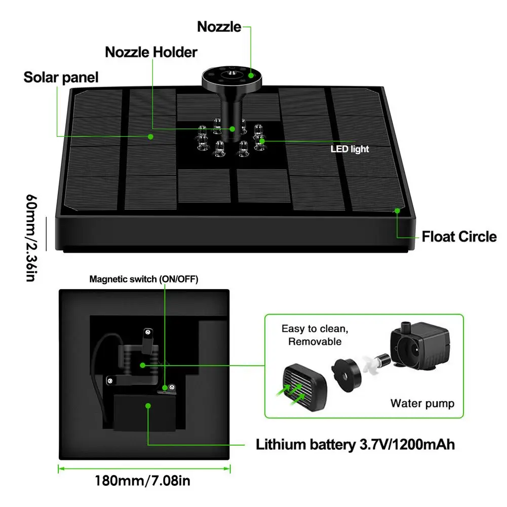 1. Powerbank, długi czas świecenia: nowa ulepszona wersja, fontanna solarna 5v 4W. Gdy słońce jest pełne, rozpyla wodę mocniej niż jakakolwiek inna fontanna na rynku; Ma wbudowaną 1200mAh wysokowydajną bateria litowo-polimerowa z funkcją powerbank. Woda może być rozpylana w pochmurne dni, a strumień świetlny LED może pracować nieprzerwanie przez 5 godzin w nocy.