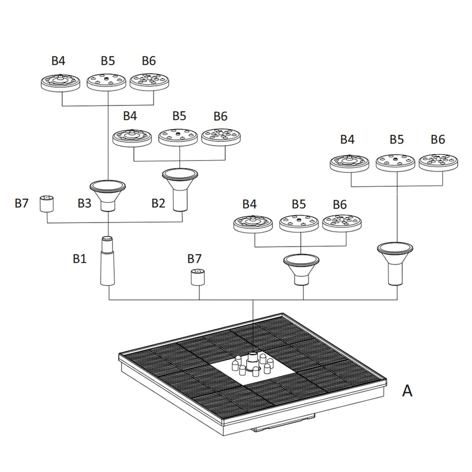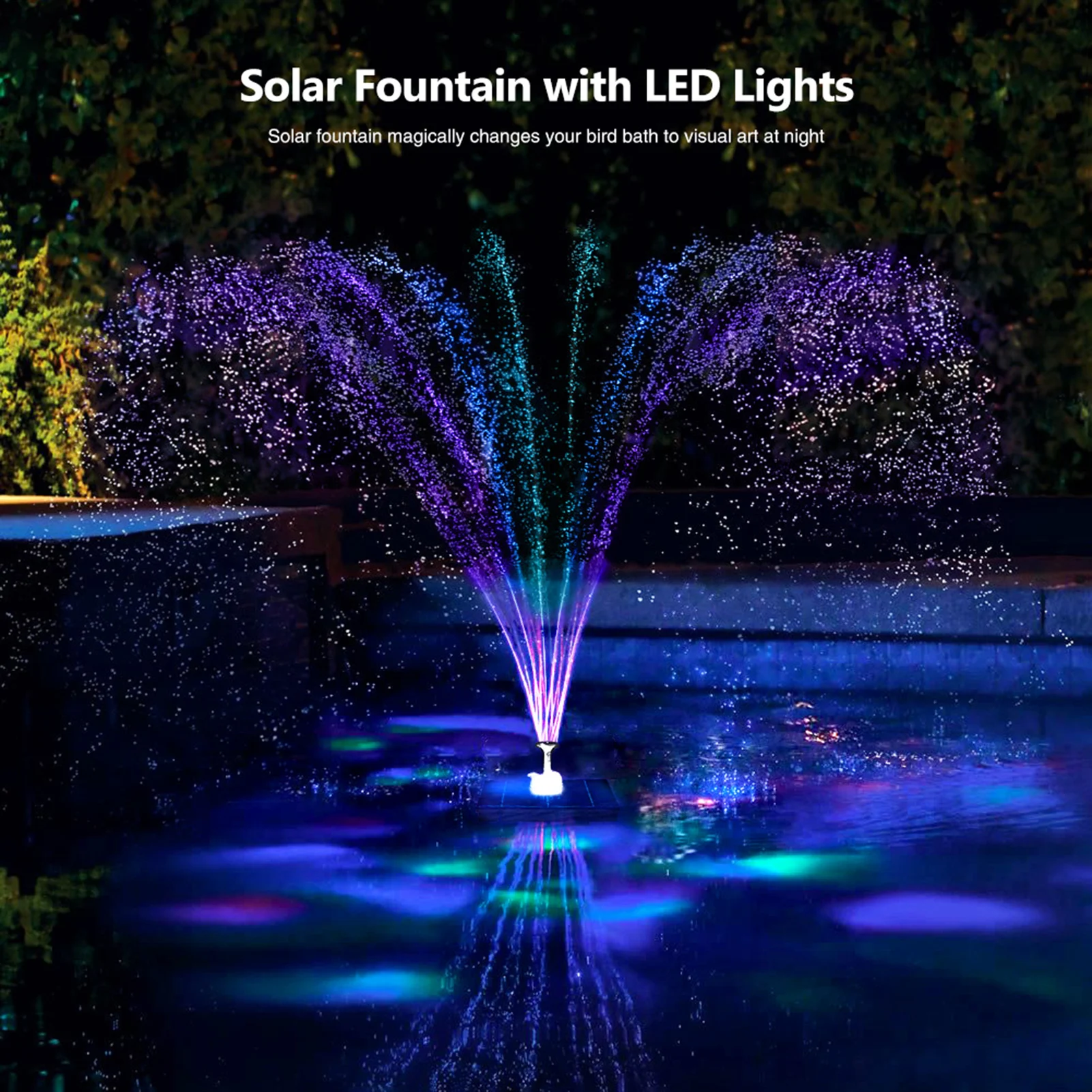2. 7 różnych dysz: nasza pompa solarna jest wyposażona w 7 różnych dysz. Wysokość dyszy można regulować, aby zapobiec rozpryskiwaniu się wody z zlewu. Wysokość wody fontannowej zależy od intensywności słońca, przepływ wody może osiągnąć 180L/H, a wysokość rozpylania może osiągnąć 50 cm. Twórz różne krajobrazy, aby przyciągnąć ptaki i sprawić, że twój ogród będzie bardziej żywy i piękny.