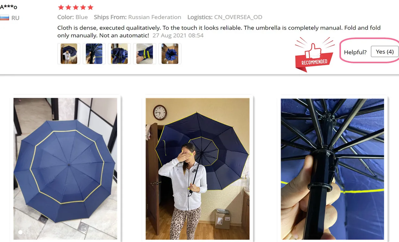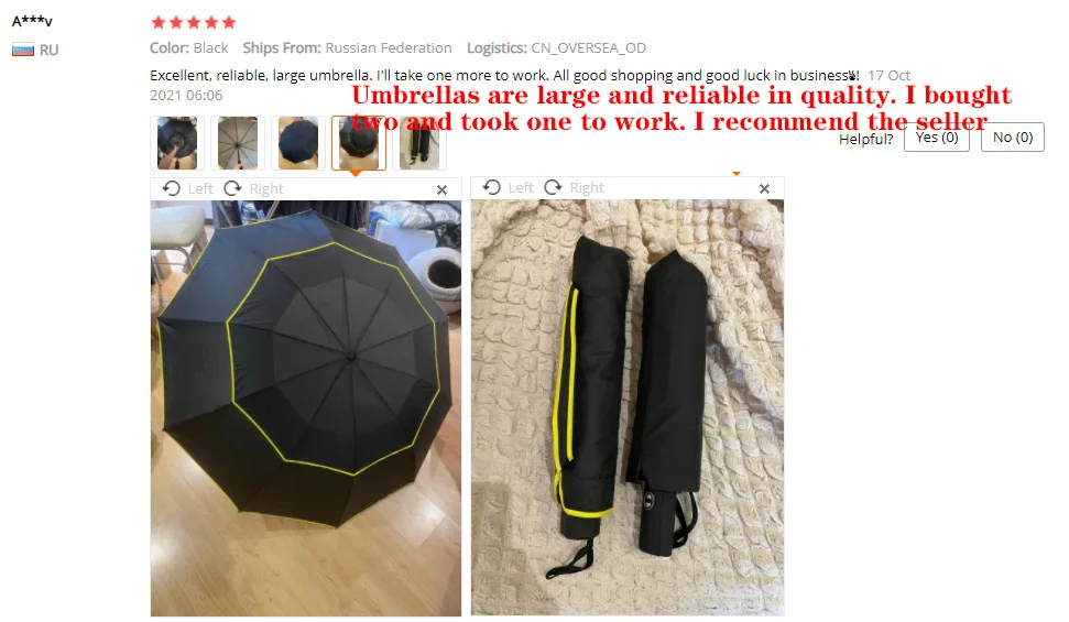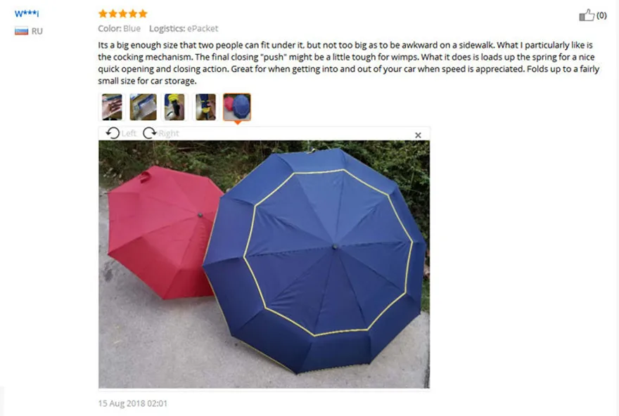 „Zdjęcie kupującego pokazuje dokładnie, jak duży jest parasol”.