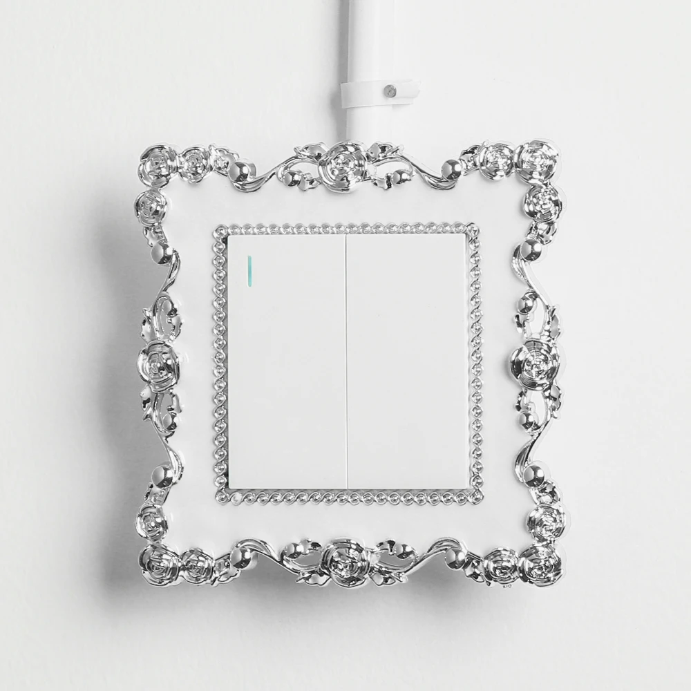 Złoto srebro żywica obudowa przełącznika światła pojedyncza i podwójna rama gniazda Surround Rose Edge Home dekoracja biurowa naklejka ścienna