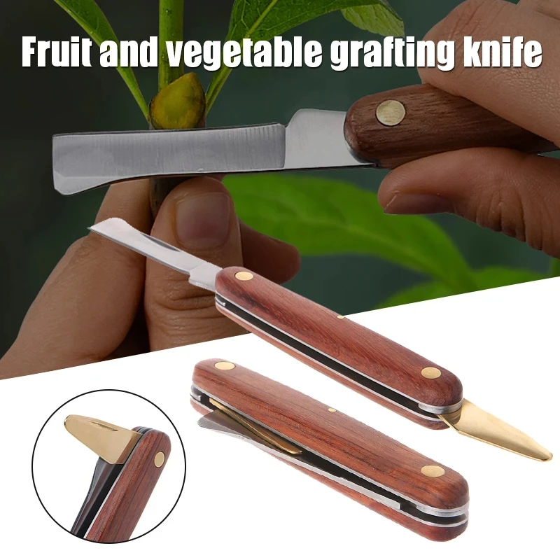 Narzędzia do szczepienia składany nóż do szczepienia profesjonalny nóż do szczepienia ogrodowego ze stali nierdzewnej z drewnianym uchwytem nóż do szczepienia