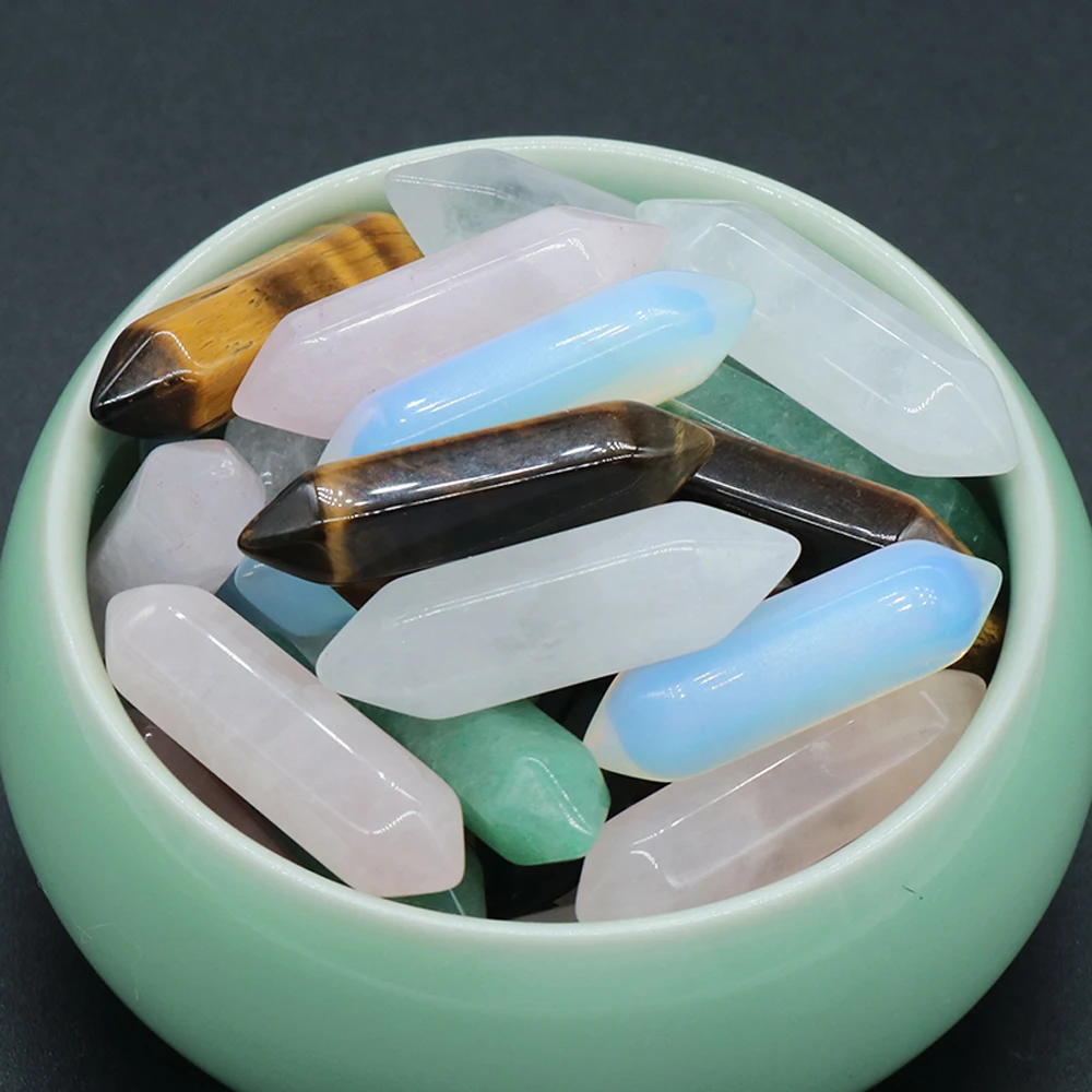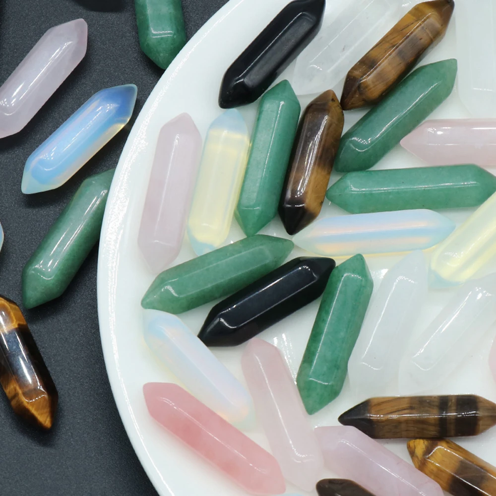 Naturalne Home Decoration Opal Rose Quartz dwugłowy wskazał sześciokątne stożek uzdrawianie Reiki kryształ obsydian różdżka ozdoby 1PC