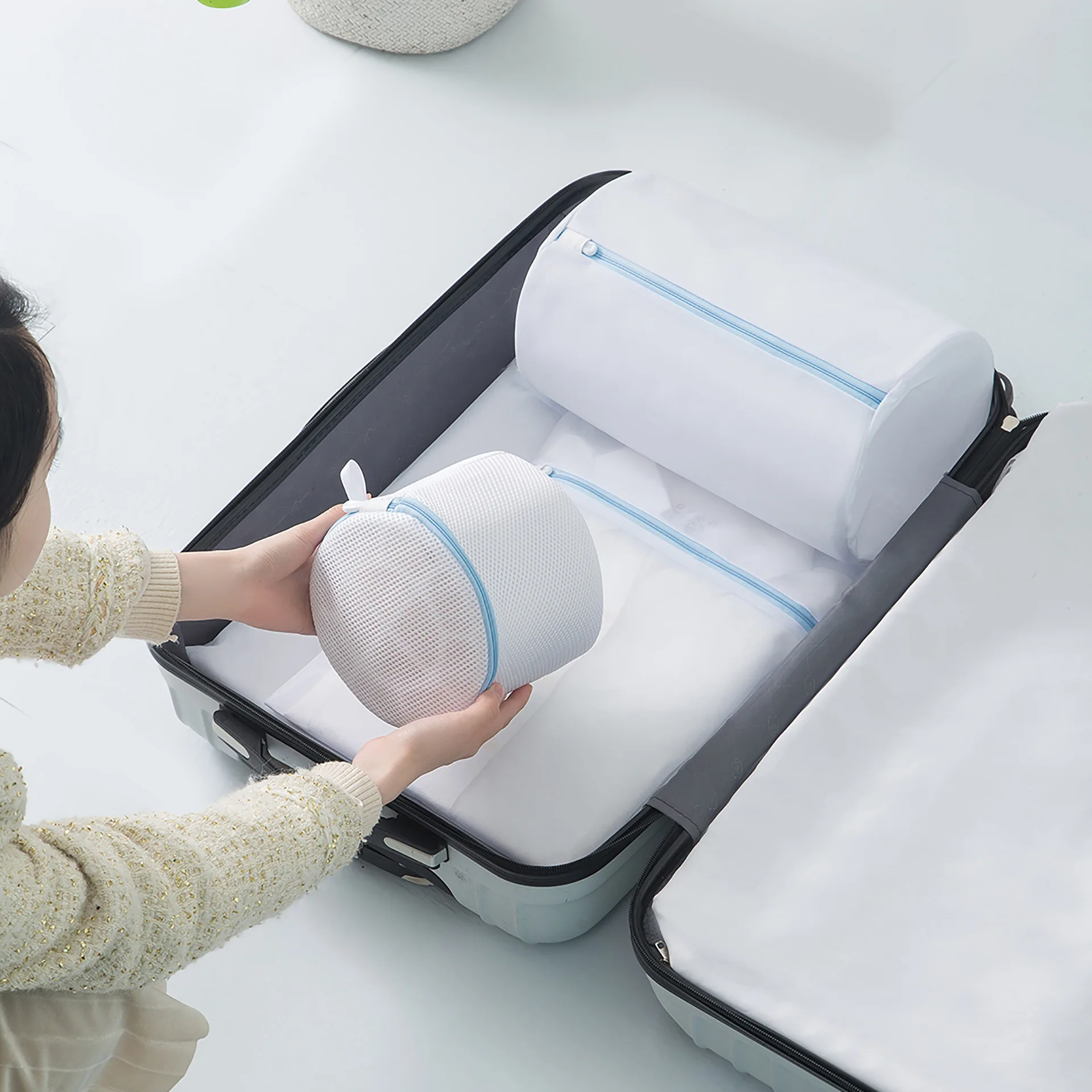 Niebieski zamek siatki kosmetyczki pralki dla gospodarstw domowych maszyna torba na pranie bielizna biustonosz skarpetki brudne ubrania organizator kosze na pranie
