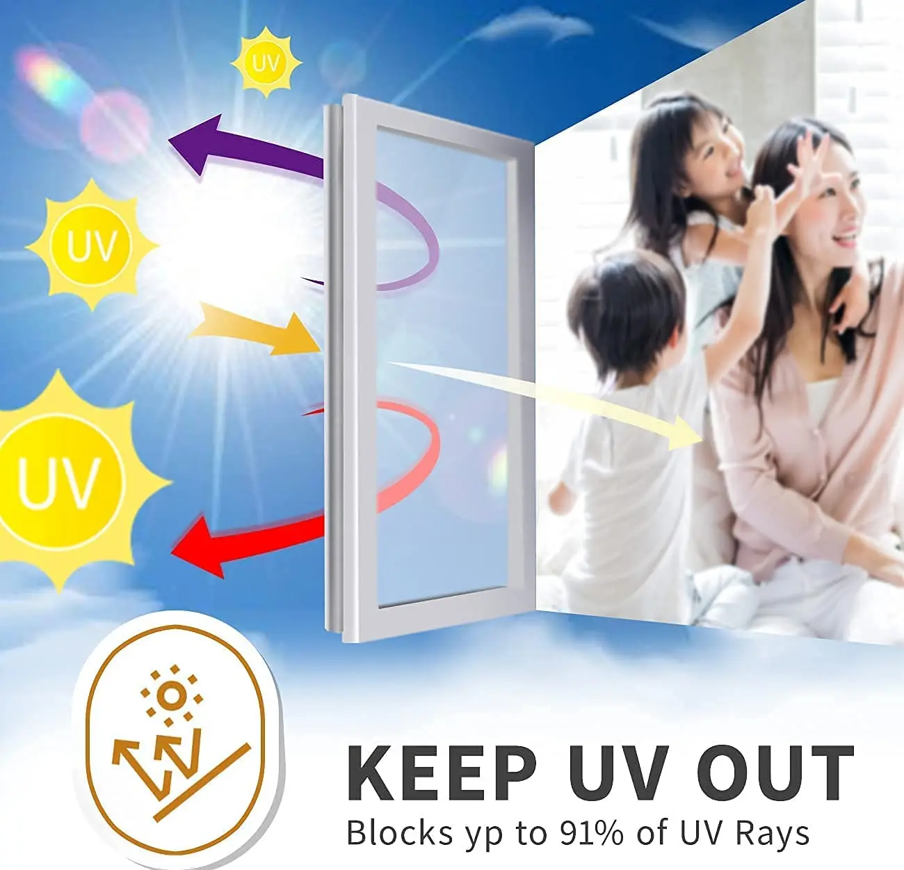 Nasza statyczna folia okienna DIY z doskonałym efektem izolacji cieplnej może skutecznie blokować promienie UV, a tymczasem utrzymywać temperaturę w pomieszczeniu w dół.