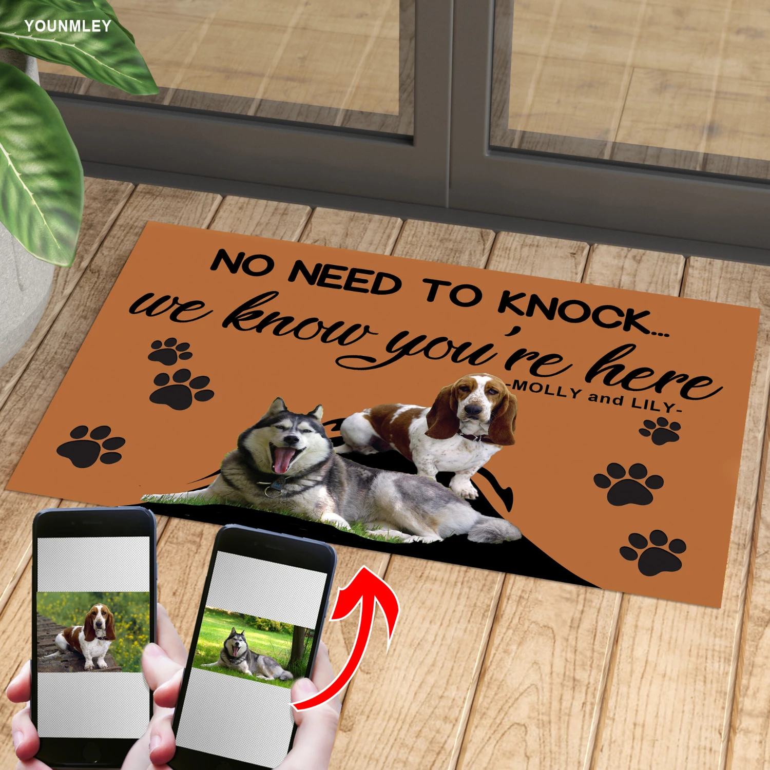 Niestandardowa wycieraczka spersonalizowana nazwa prezentu Pet Dog Cat zdjęcie nie trzeba pukać wiemy, że jesteś tutaj, kryty/dywan zewnętrzny wycieraczka do butów