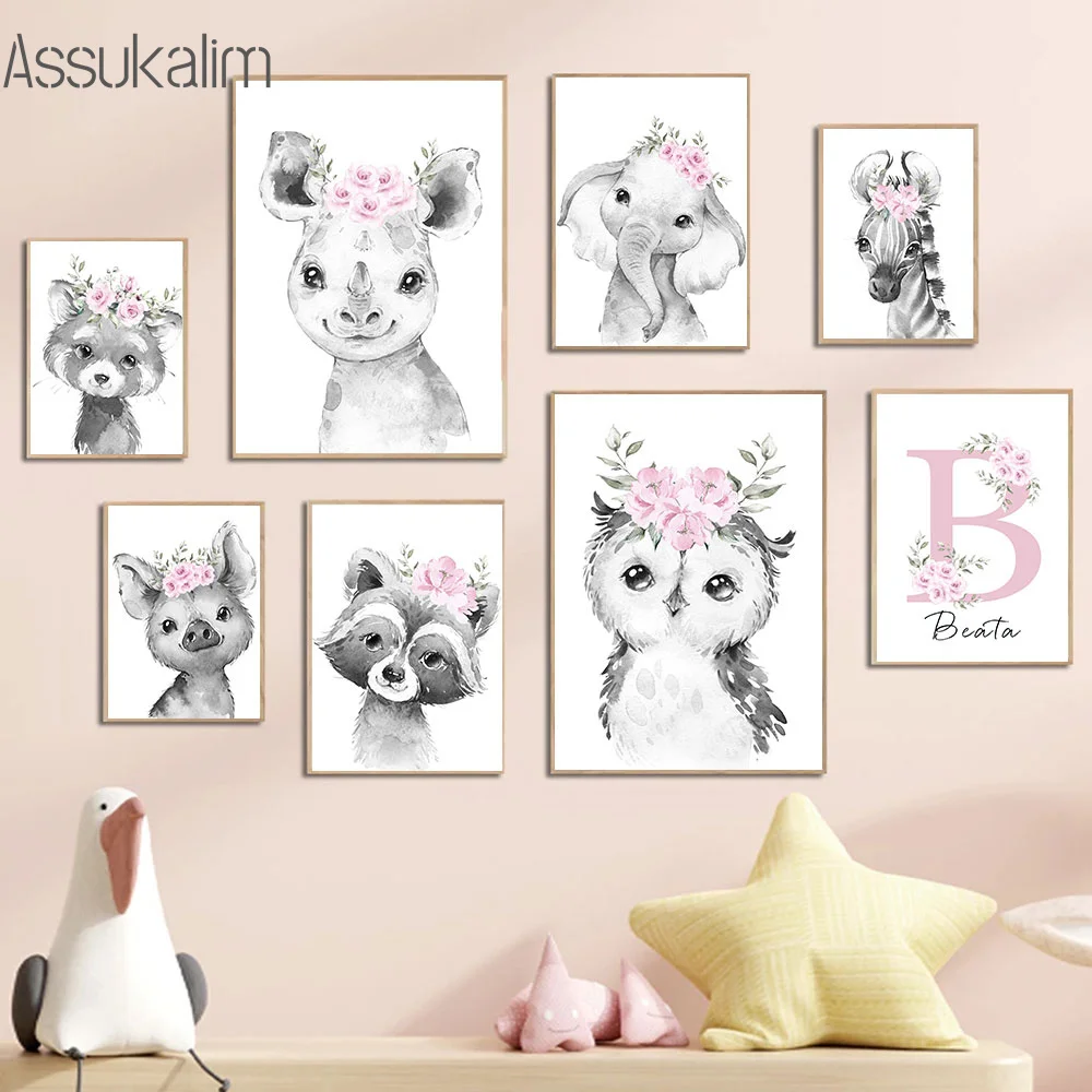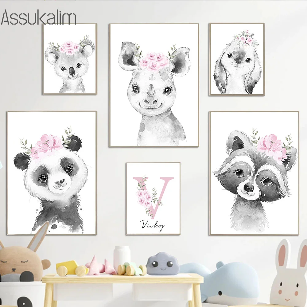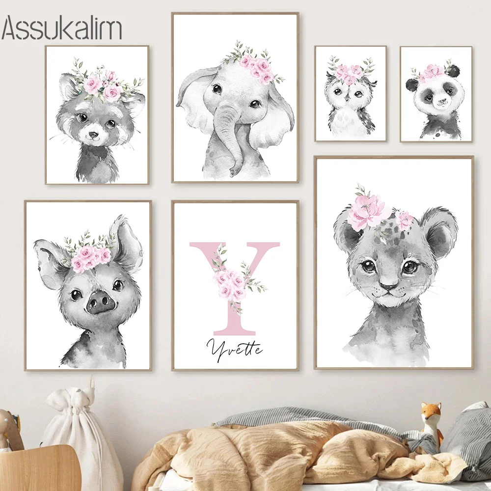 Niestandardowe dziewczyny plakaty z napisami przedszkole obrazy na ścianę zwierzę z dżungli obraz na płótnie słoń niedźwiedź ściana drukowany obraz wystrój pokoju dziecięcego
