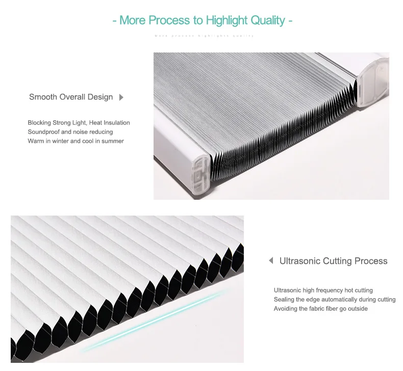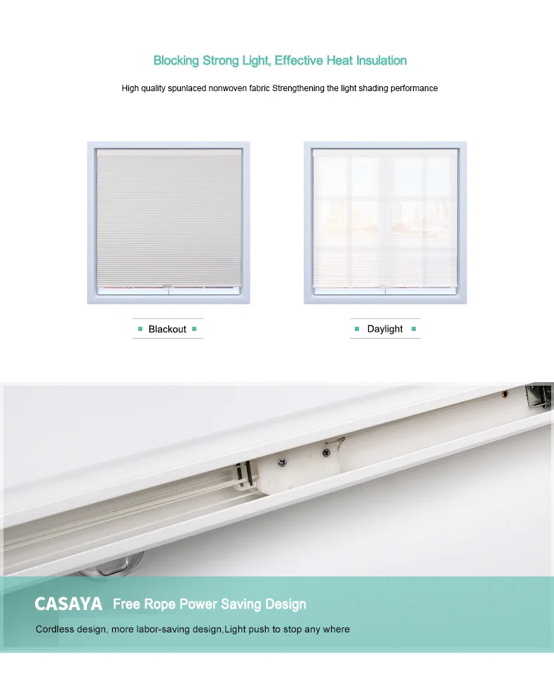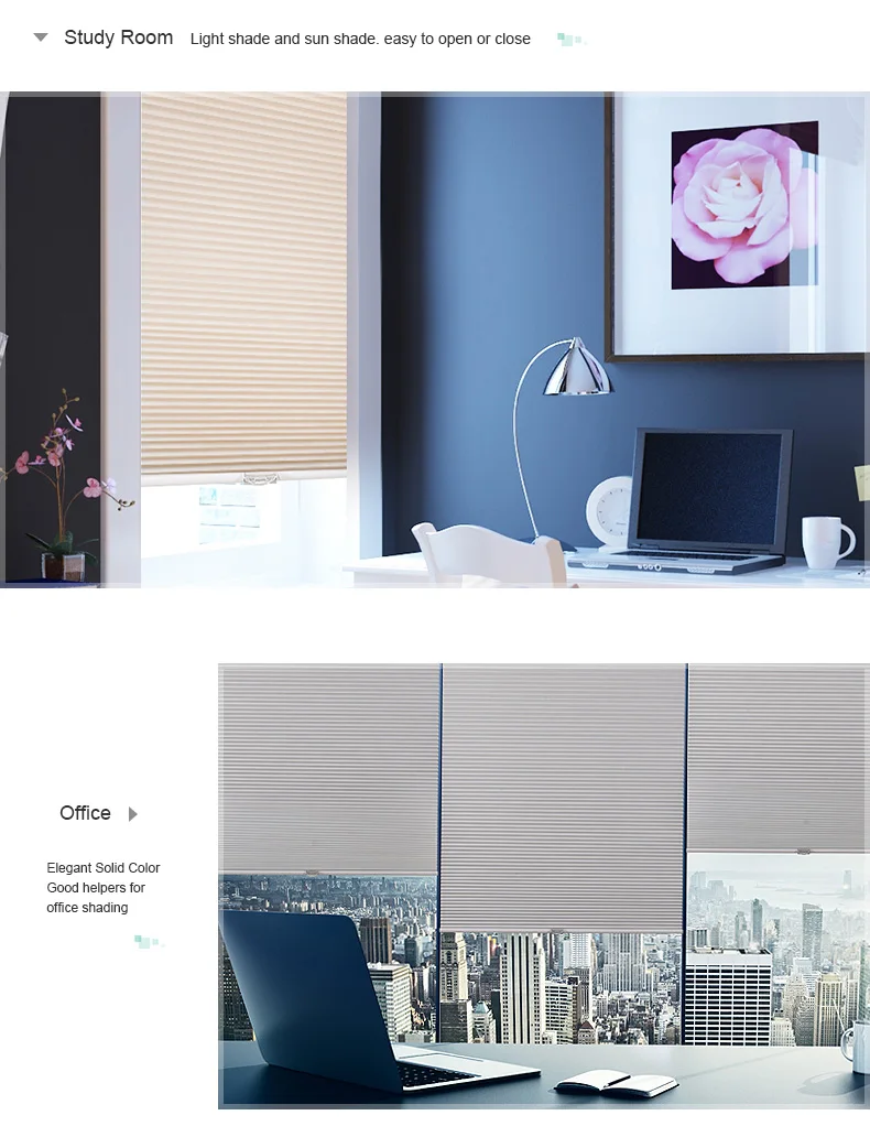 Komórki struktury plastra miodu zatrzymują powietrze, utrzymując dom w chłodzie latem i ciepło w zimie; Oszczędzając pieniądze na rachunku za energię przez cały rok. Tkanina jest elegancka, ale trwała. Komórki otwierają się i zamykają w sposób akordeonowy, za pomocą prostego podnoszenia lub ciągnięcia ręki. Bez wysiłku bezprzewodowy, cień pozostaje dokładnie tam, gdzie chcesz. Ubrana w lekkie tkaniny do gięcia, które pięknie filtrują światło-nasze odcienie tworzą delikatną osłonę przeciwsłoneczną w ciągu dnia i cenią prywatność w nocy.