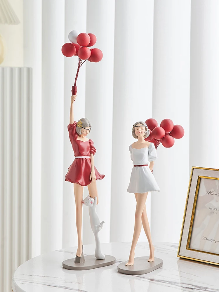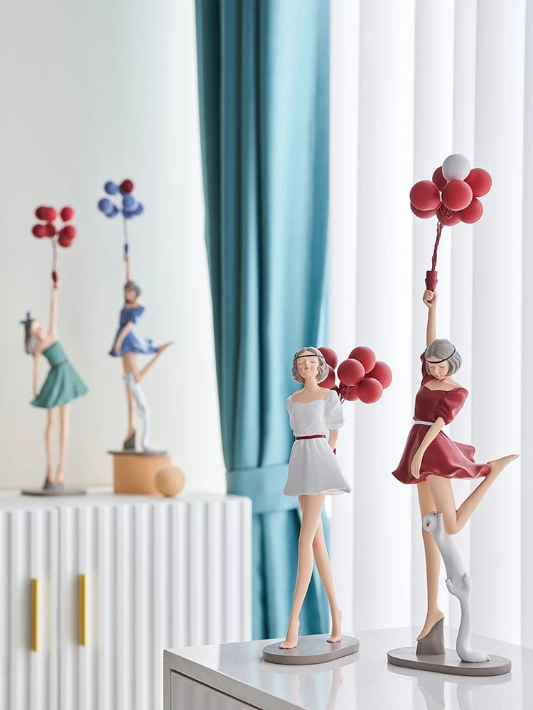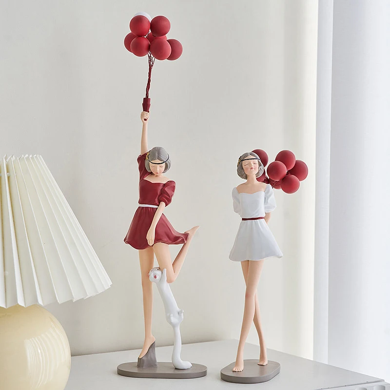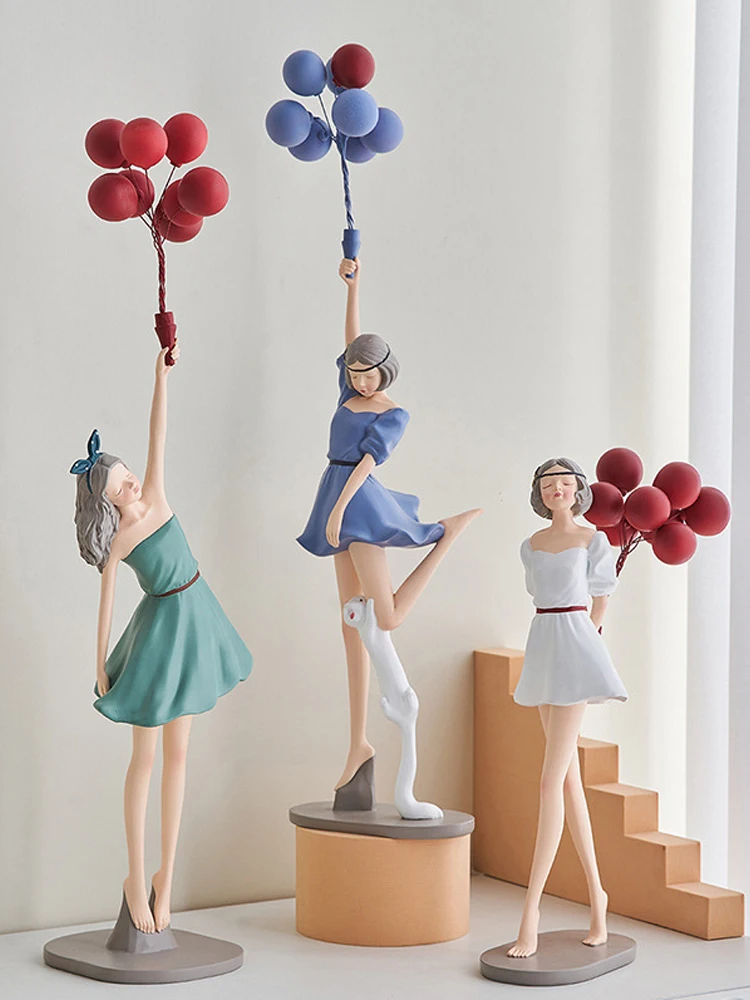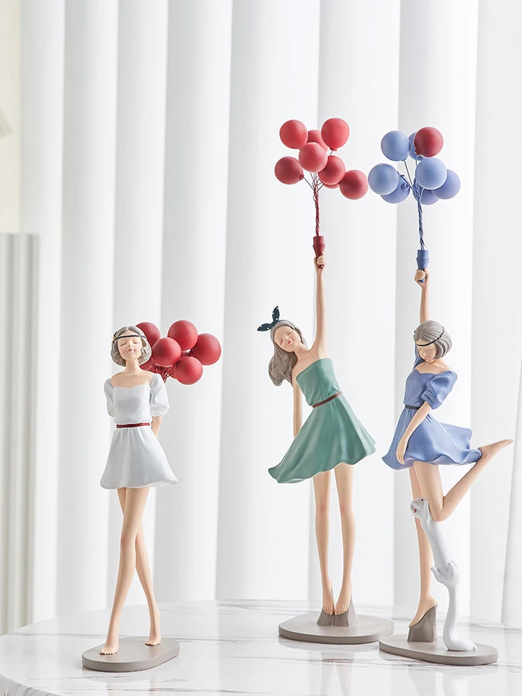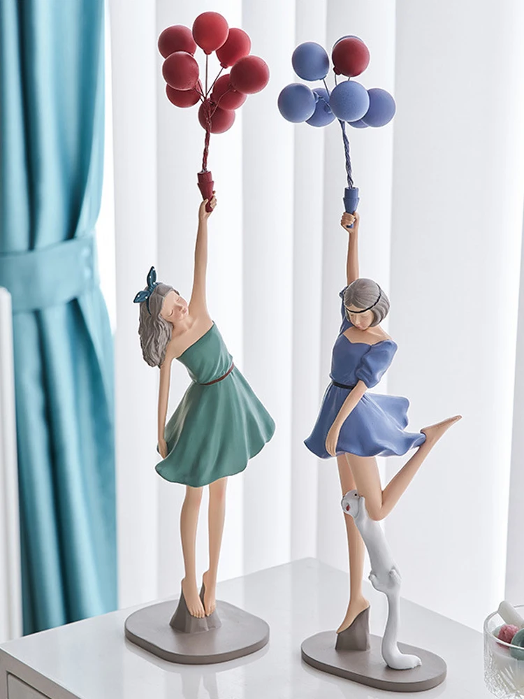 Nordic Home Decoration kreatywna żywica balonowa dziewczyna rzeźba ozdoba na biurko Modern Art figurki salon dekoracja sypialni